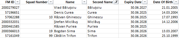 Rezerve: 12. Sebastian Ureche - 25. Emanuel Jinga, 6. Denis Casian, 14. Alin Pricop, 15. Alin Liuba, 17. Deian Pecarov,  21. Cristian Gălan