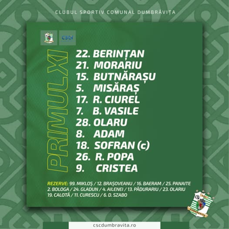 Rezerve: Arpi Miklos, Ştefan, Pricop.