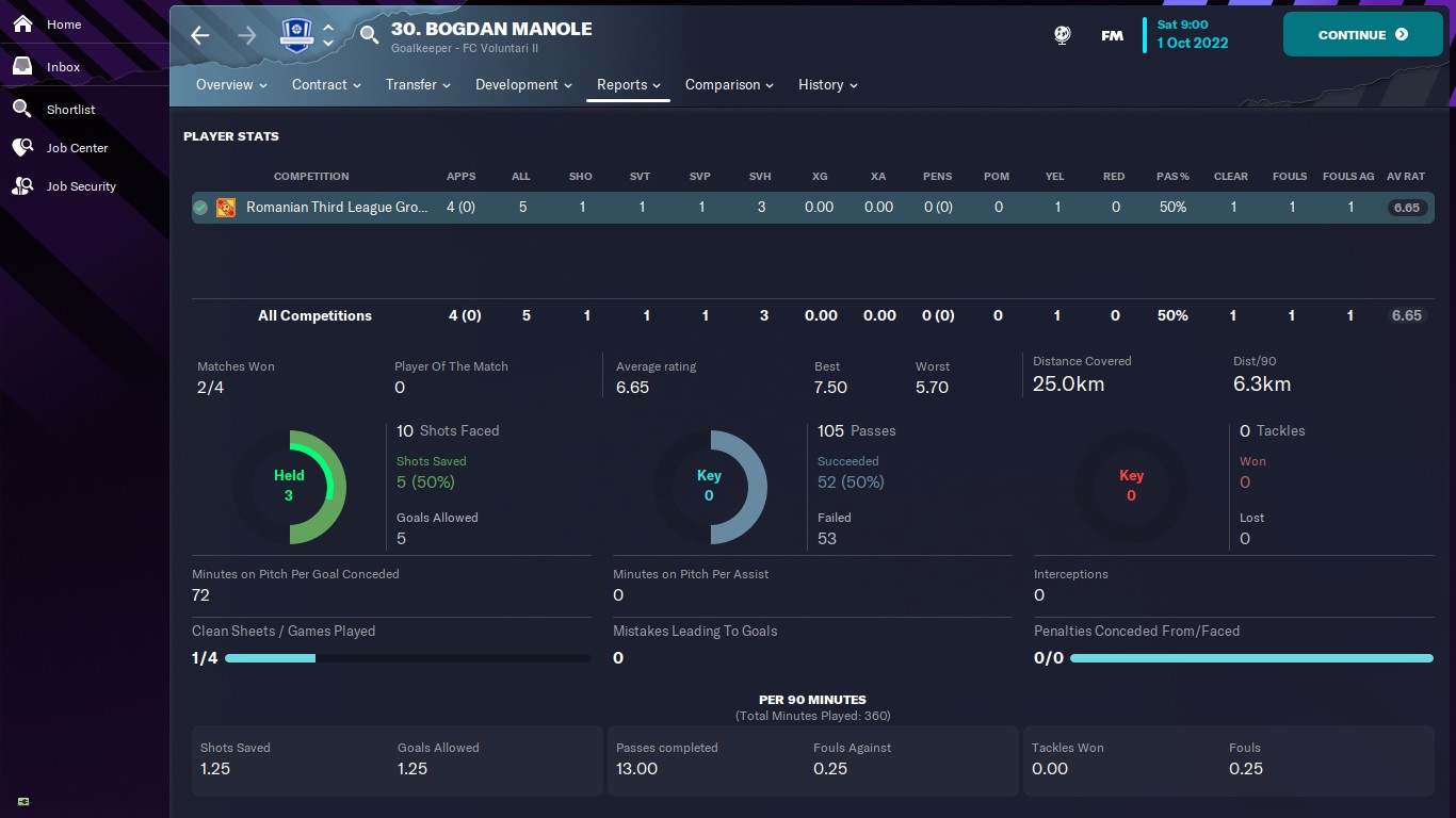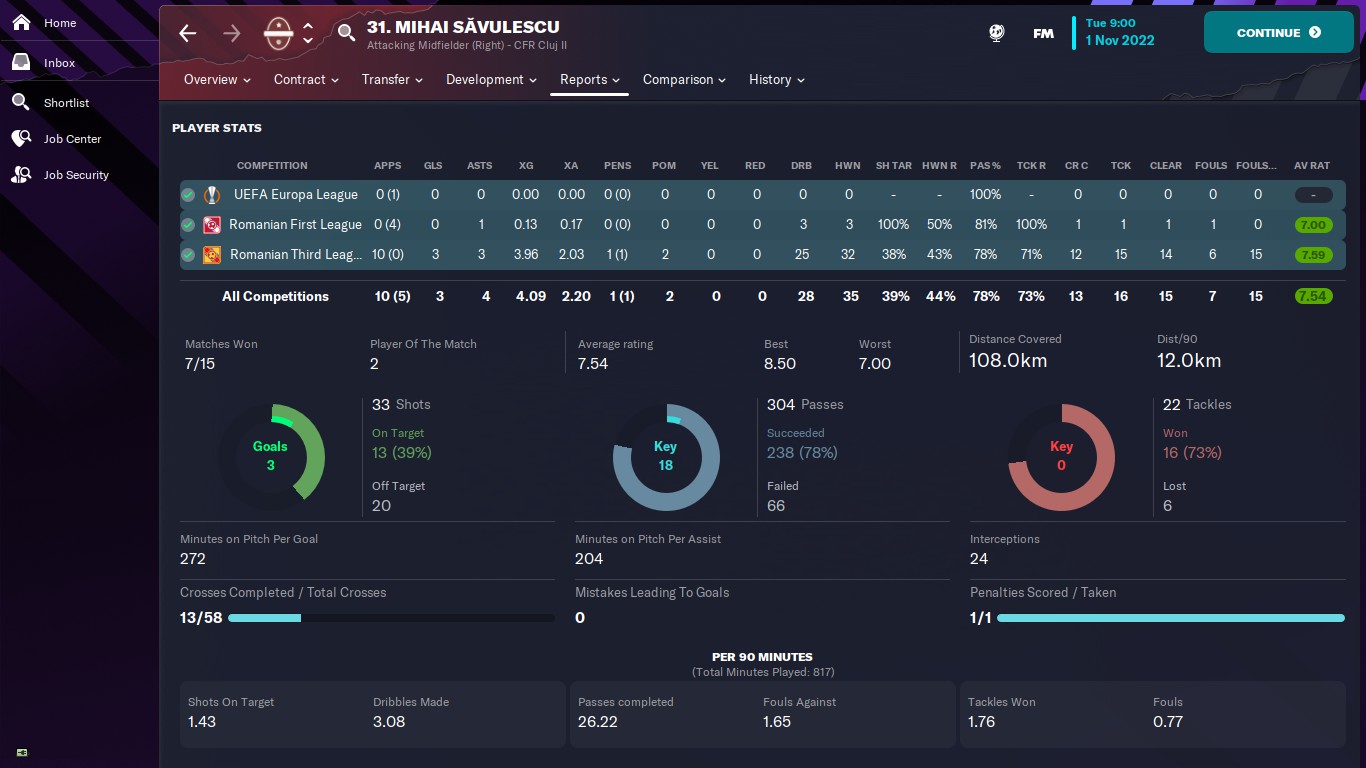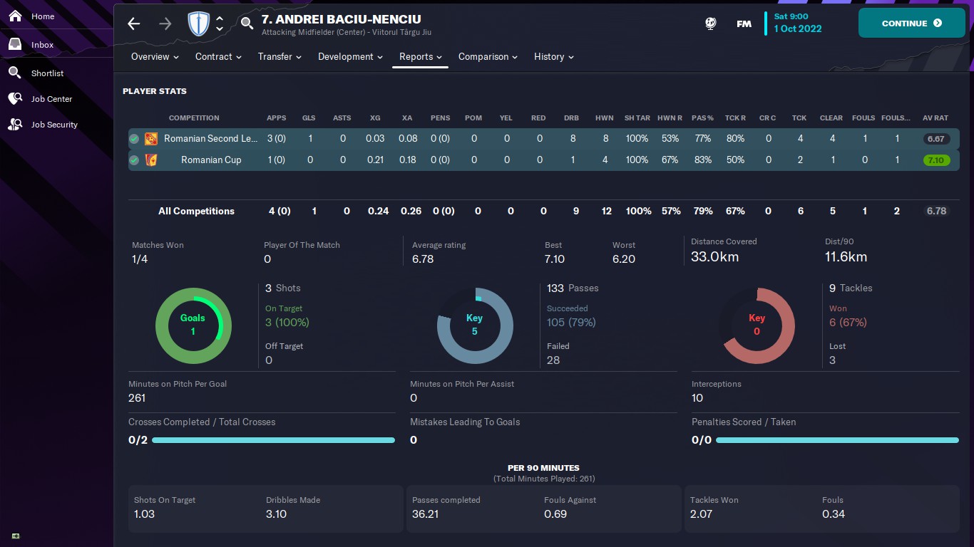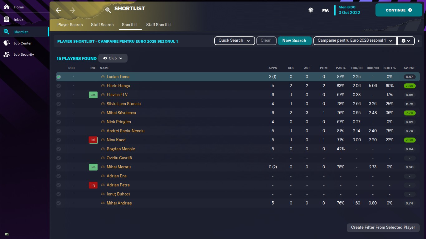 După meciul ăsta, a urmat doar o partidă la satelit, în L3, unde a fost POM, cu un 8,10 de zile mari
