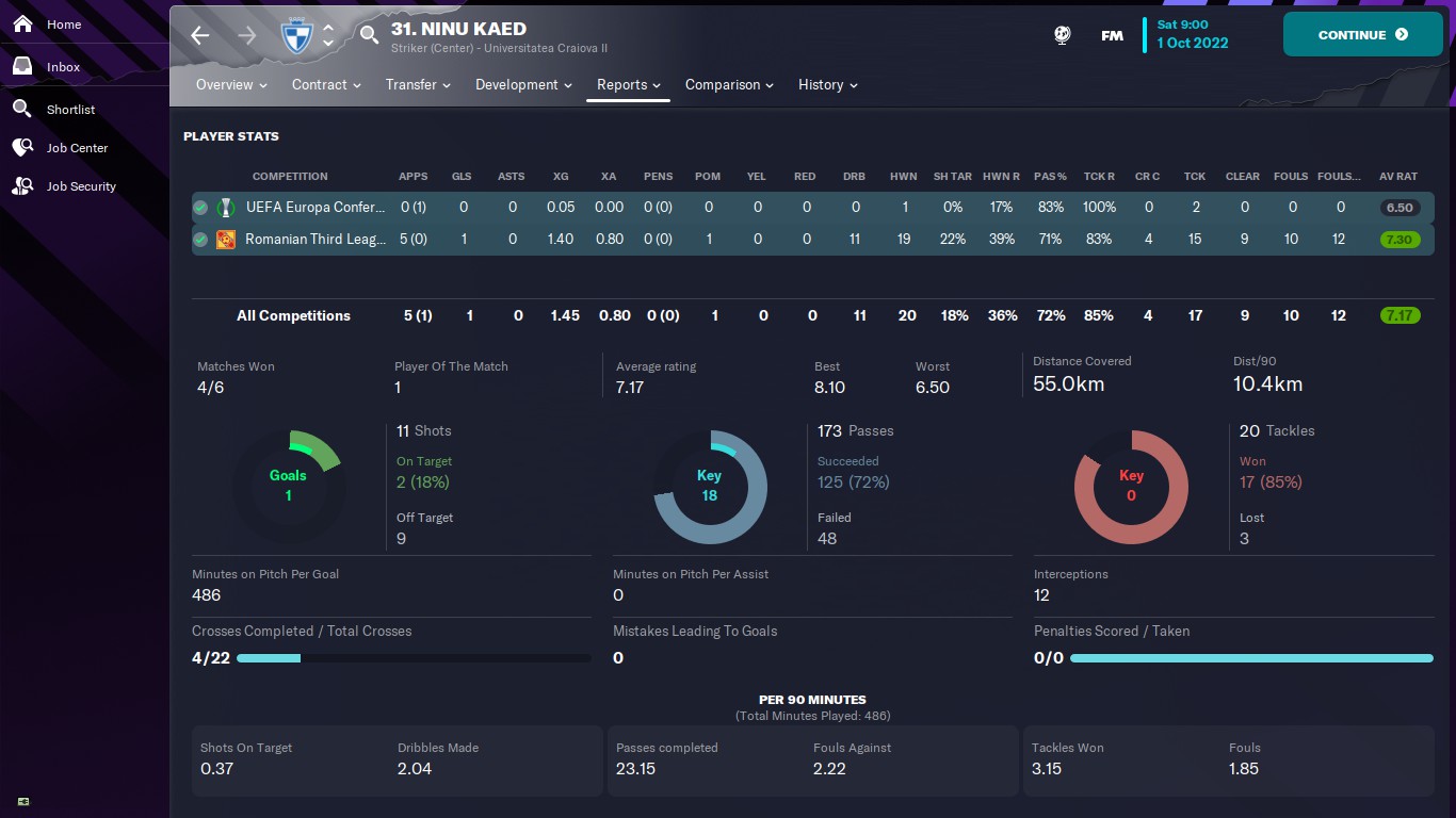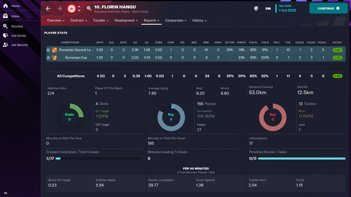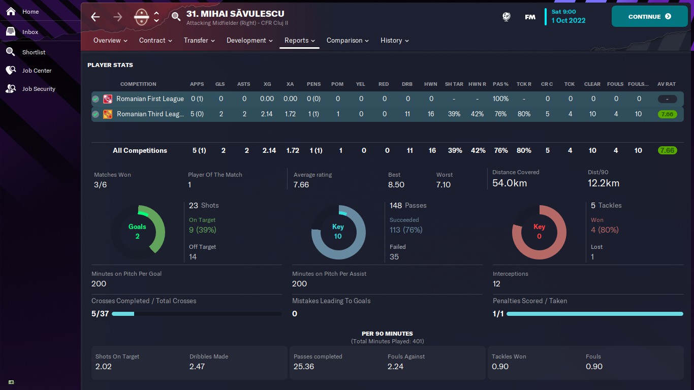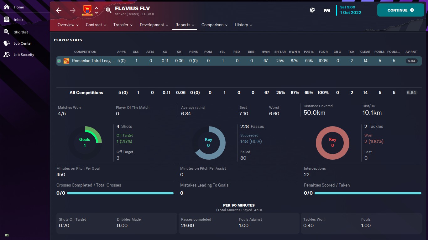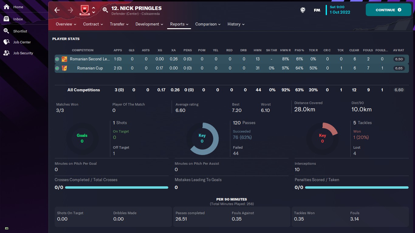 După meciul ăsta, a urmat doar o partidă la satelit, în L3, unde a fost POM, cu un 8,10 de zile mari