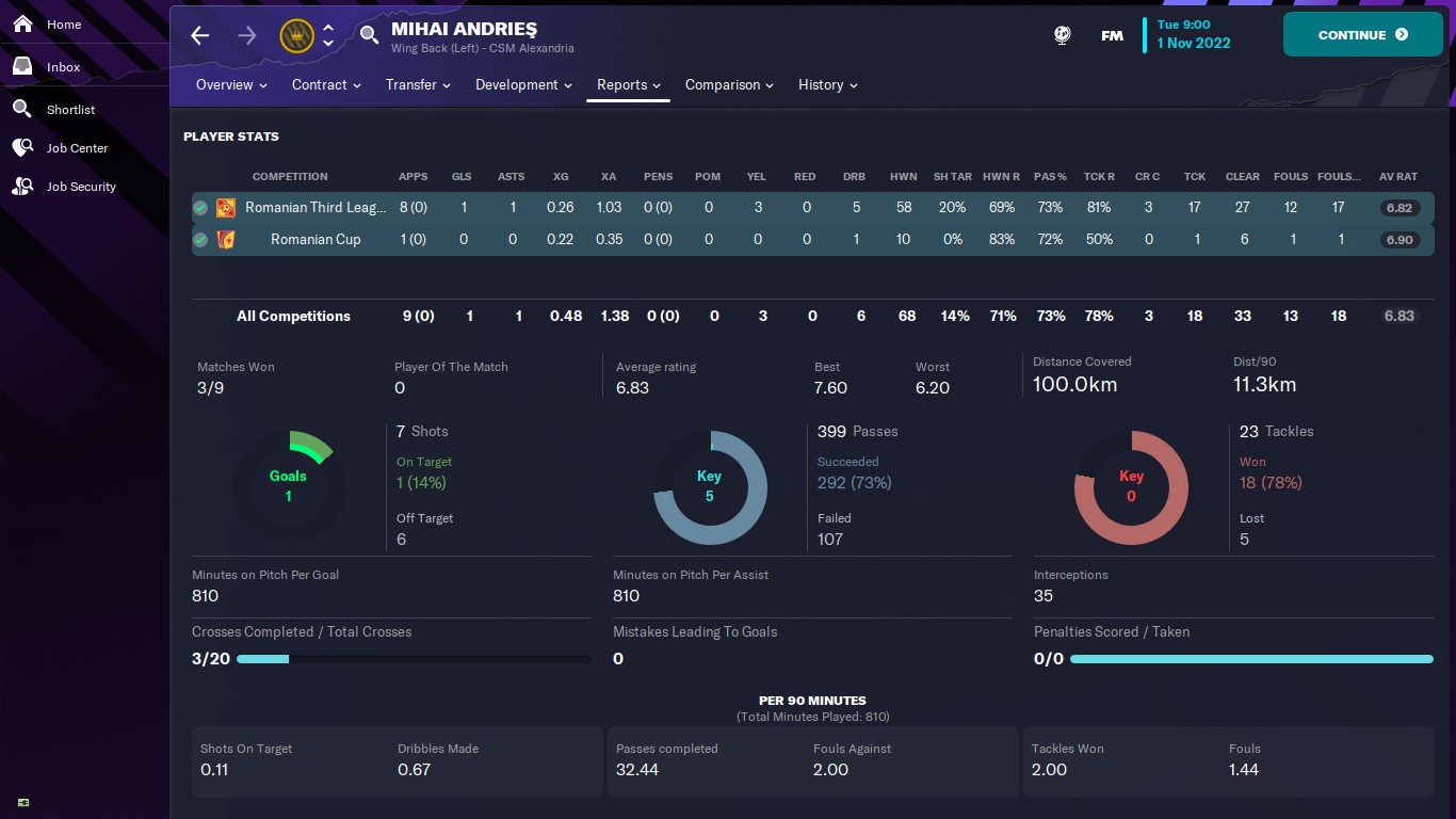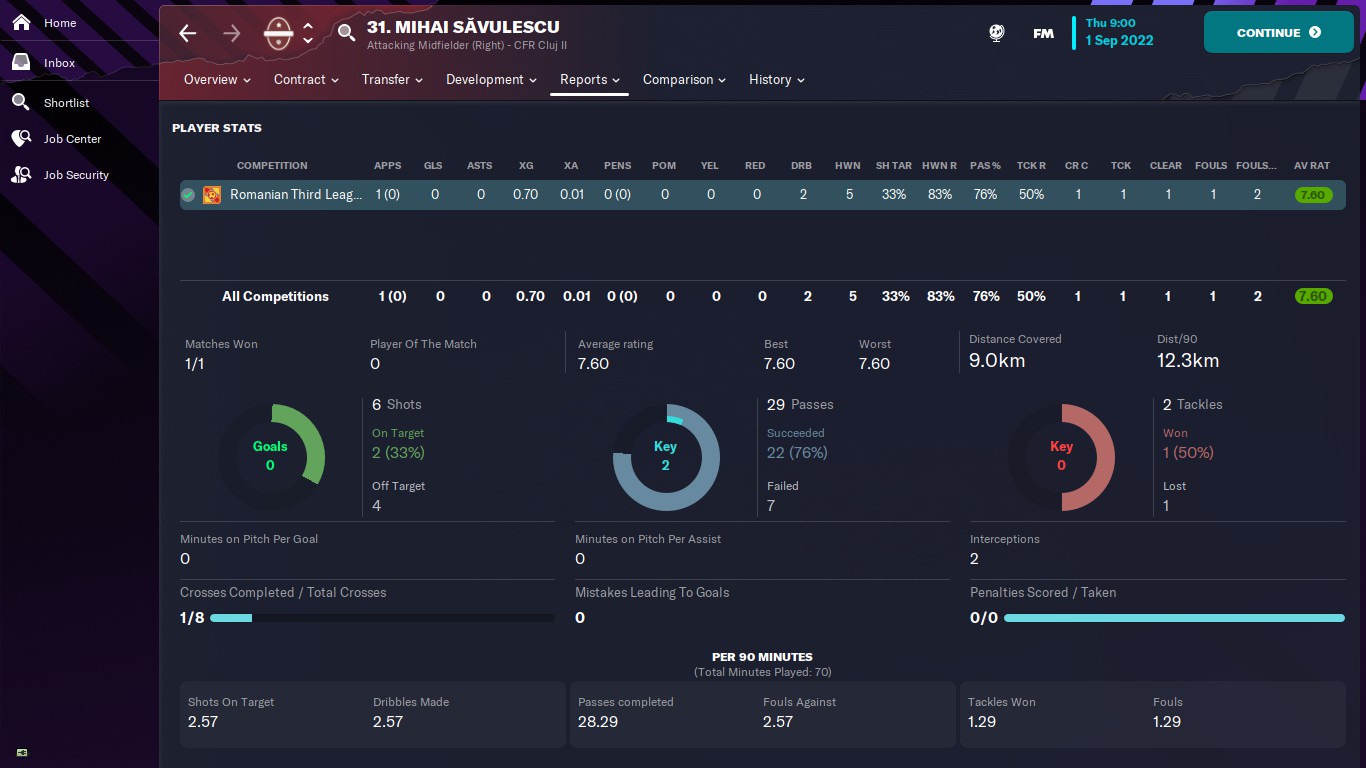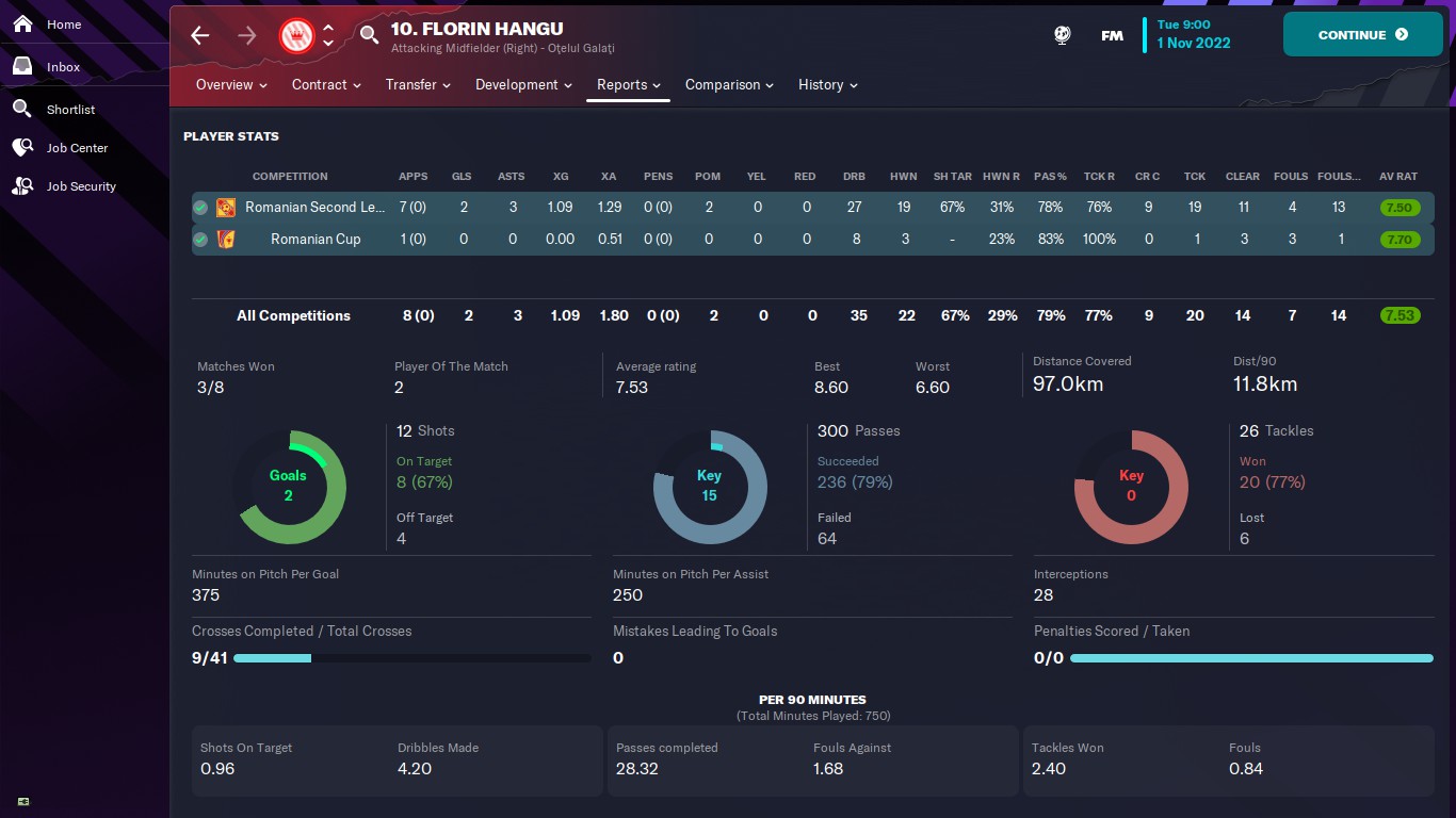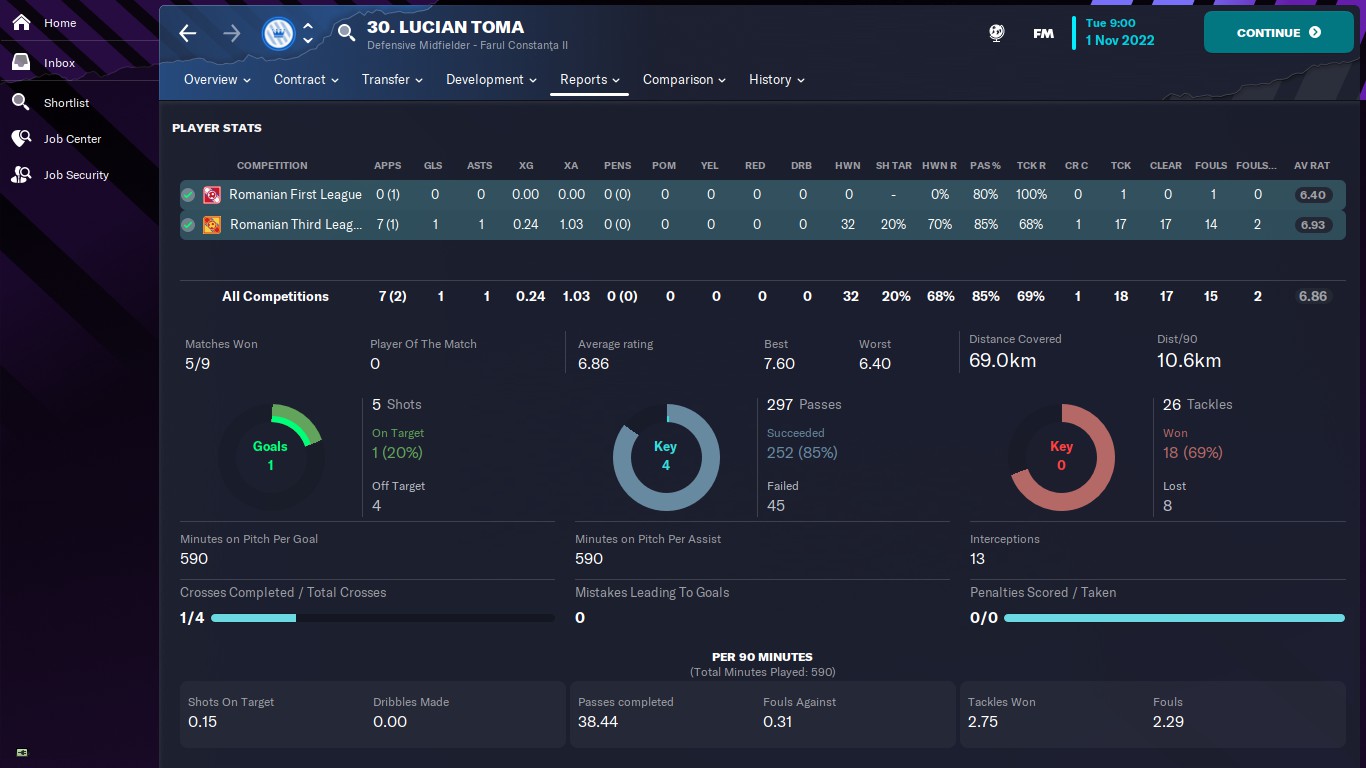 După meciul ăsta, a urmat doar o partidă la satelit, în L3, unde a fost POM, cu un 8,10 de zile mari