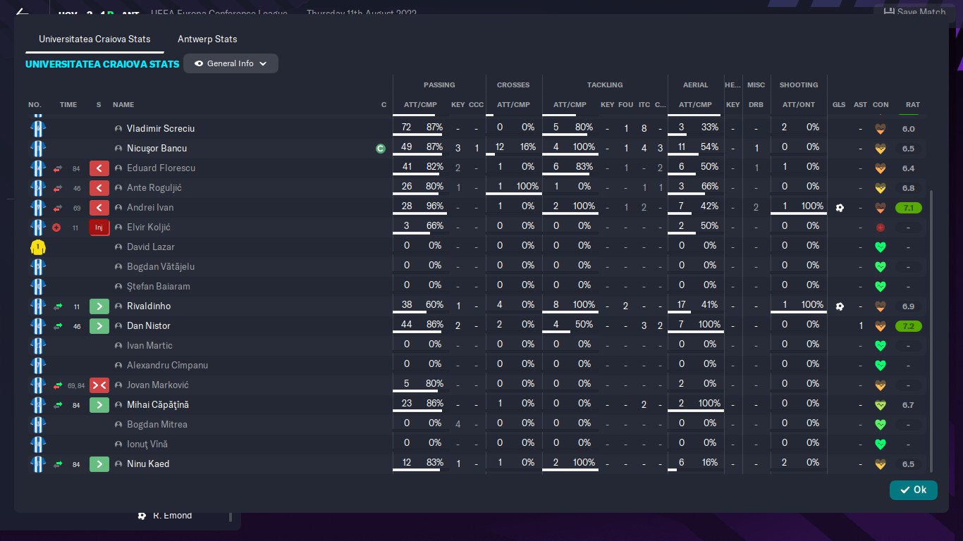 @kaedninua părut că a dat lovitura vieţii după ce a intrat pe teren în locul lui Markovic, în returul rundei a treia preliminare din Conference League, din minutul 84 până la penalty-urile de departajare, acolo unde Bancu a ratat decisiva şi a calificat-o pe Antwerp mai departe.