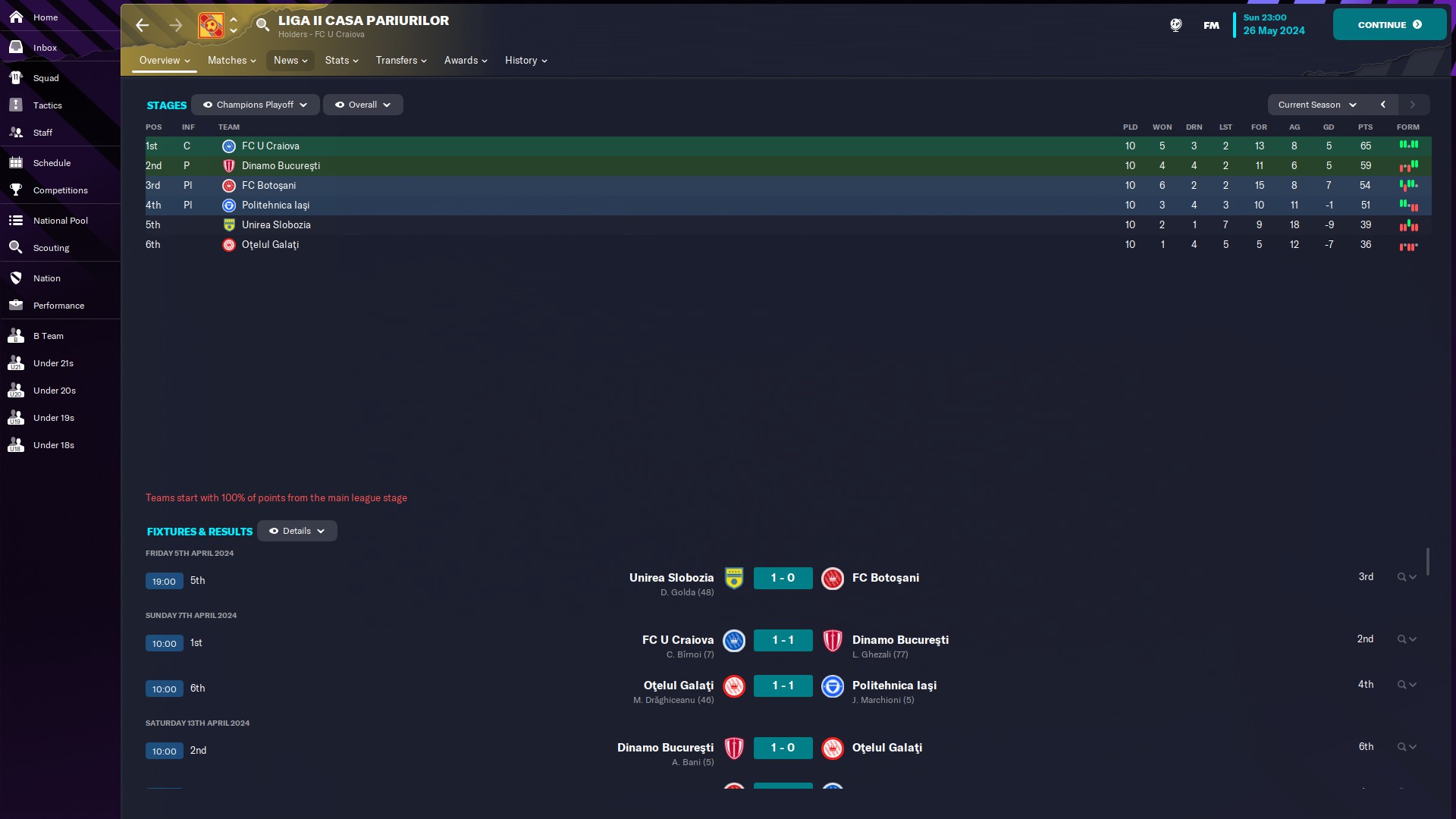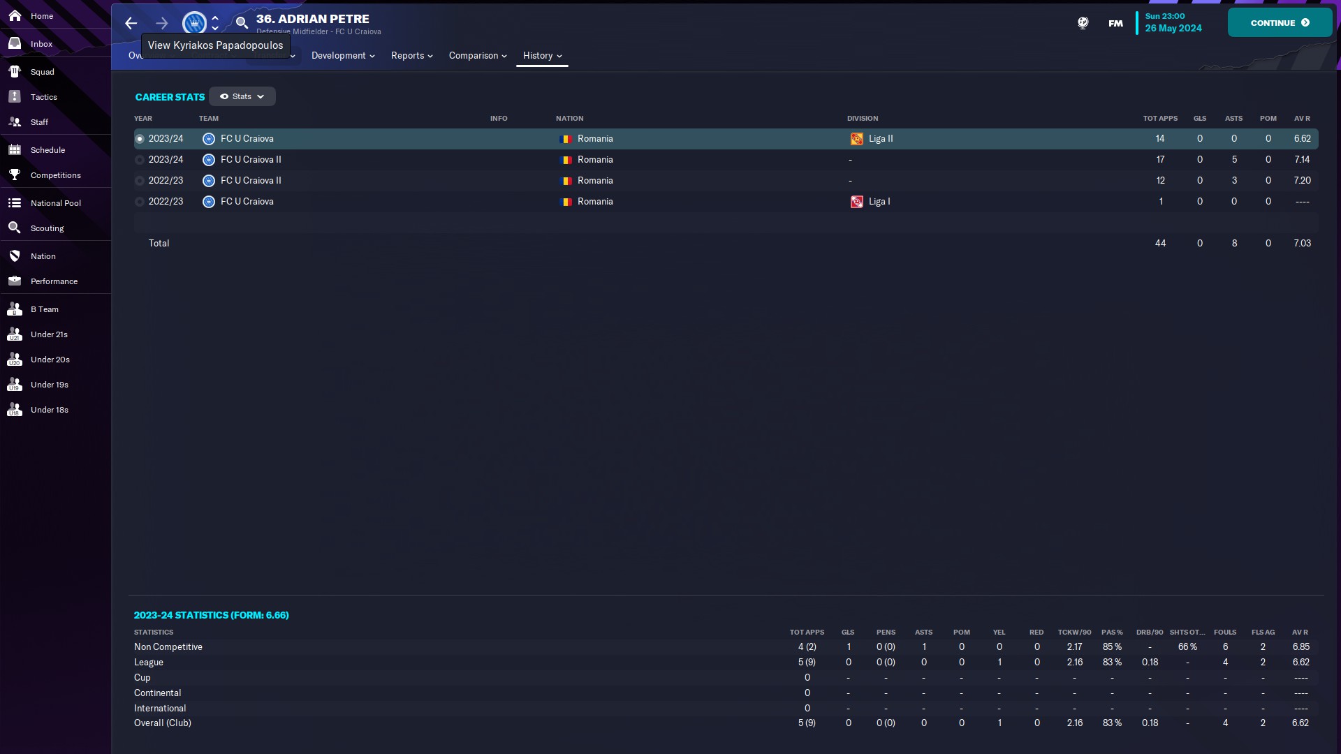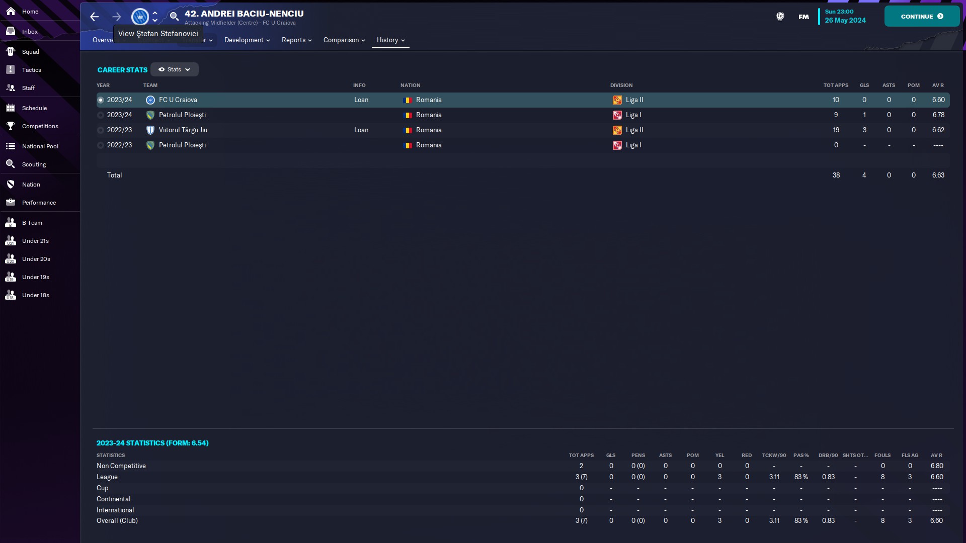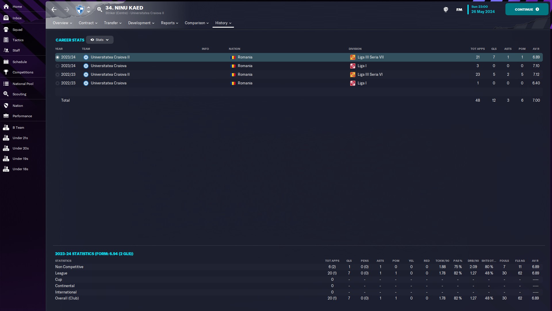 @kaedninu Universitatea Craiova 2 - 13/5/0/0 - 6.80 şi Universitatea Craiova - 1/0/0/0