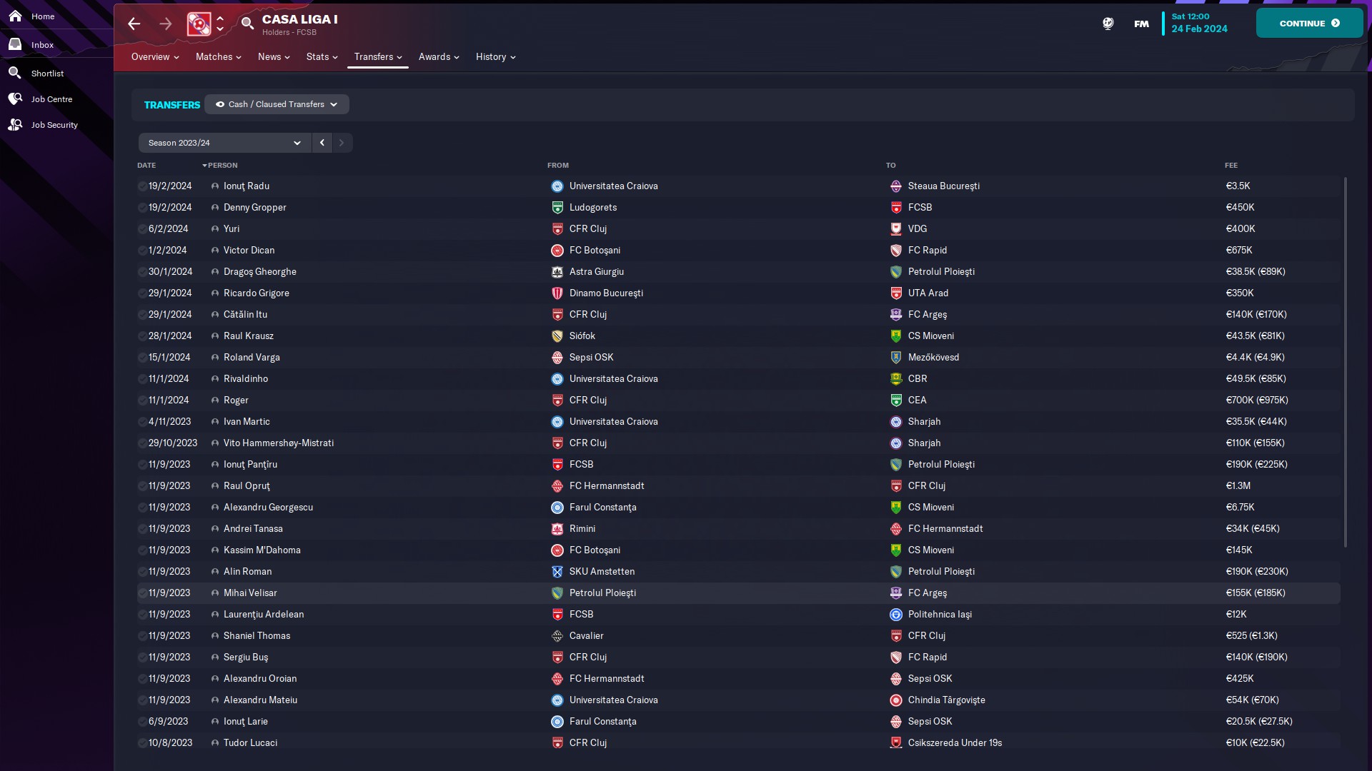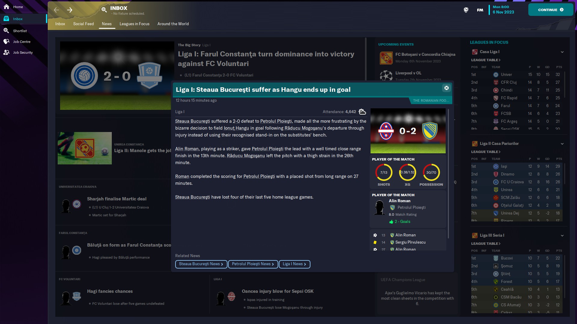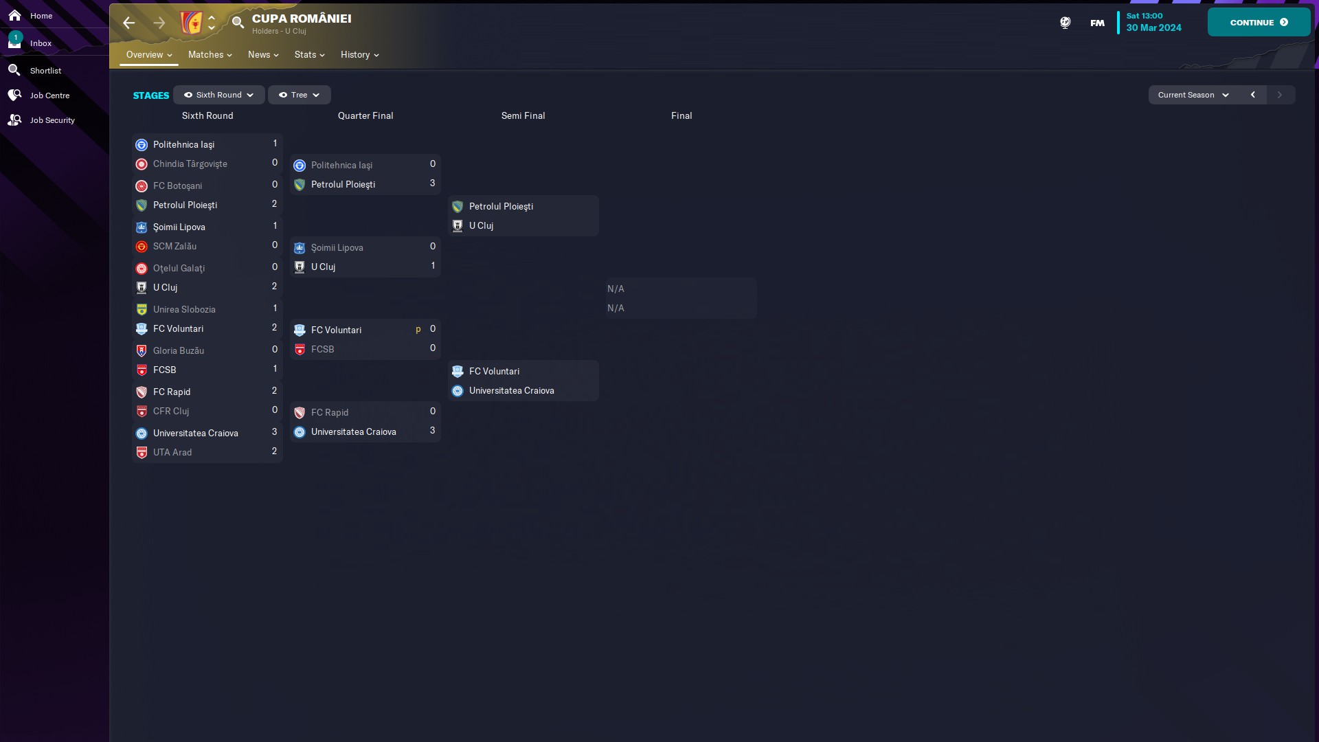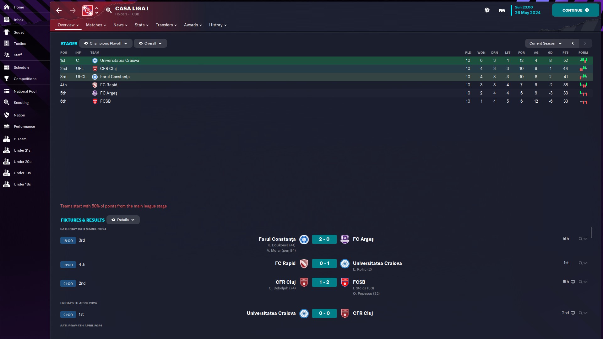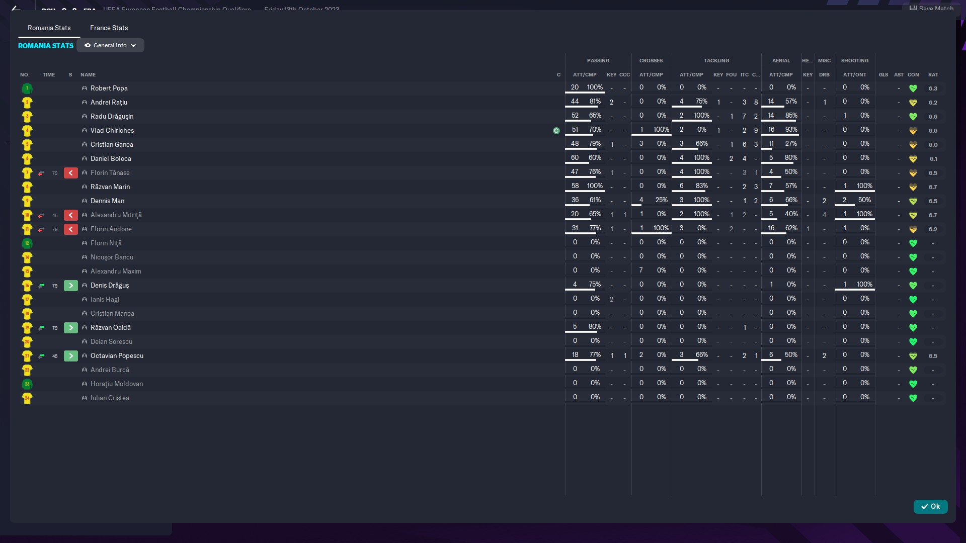 @kaedninu Universitatea Craiova 2 - 13/5/0/0 - 6.80 şi Universitatea Craiova - 1/0/0/0