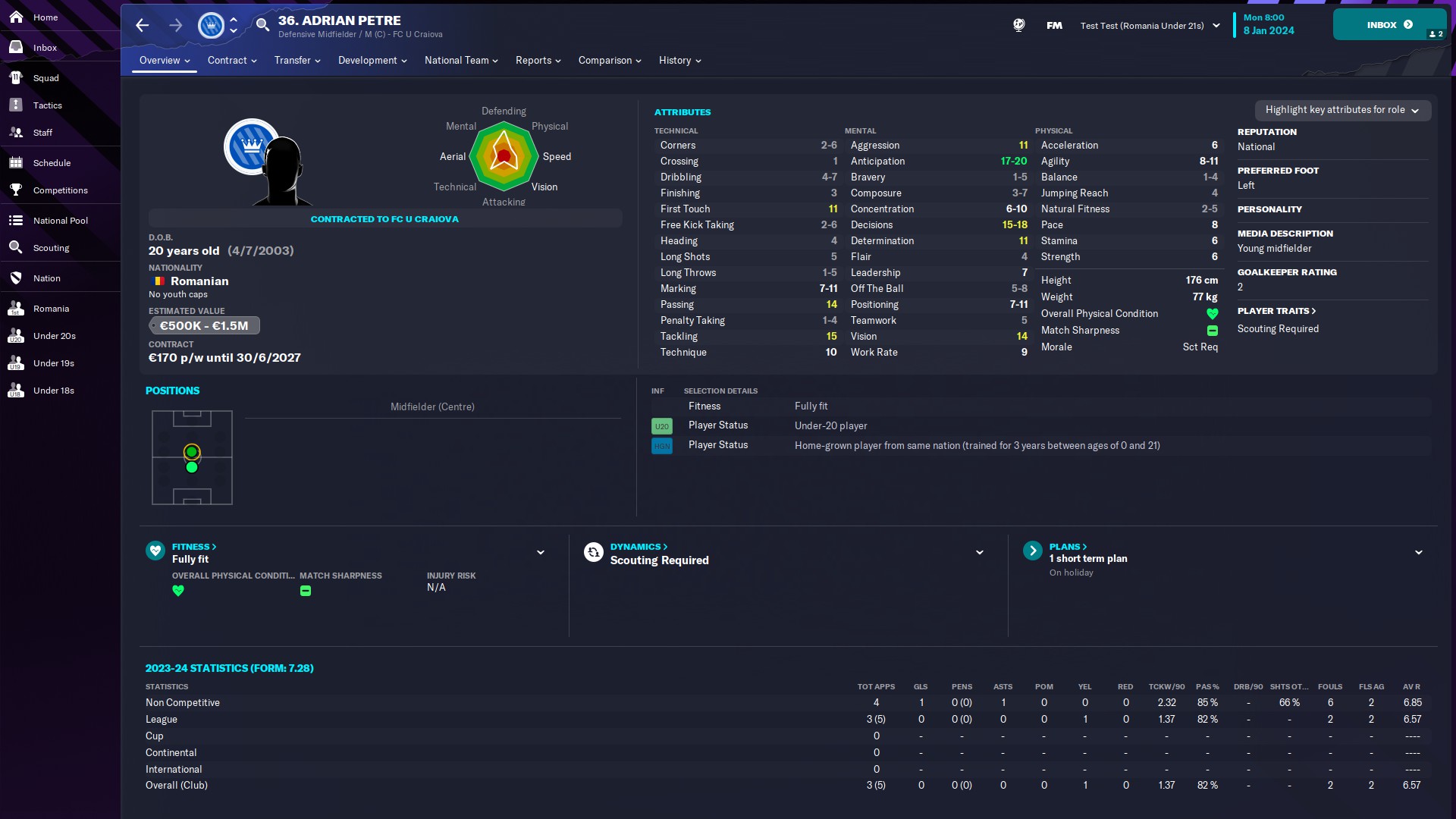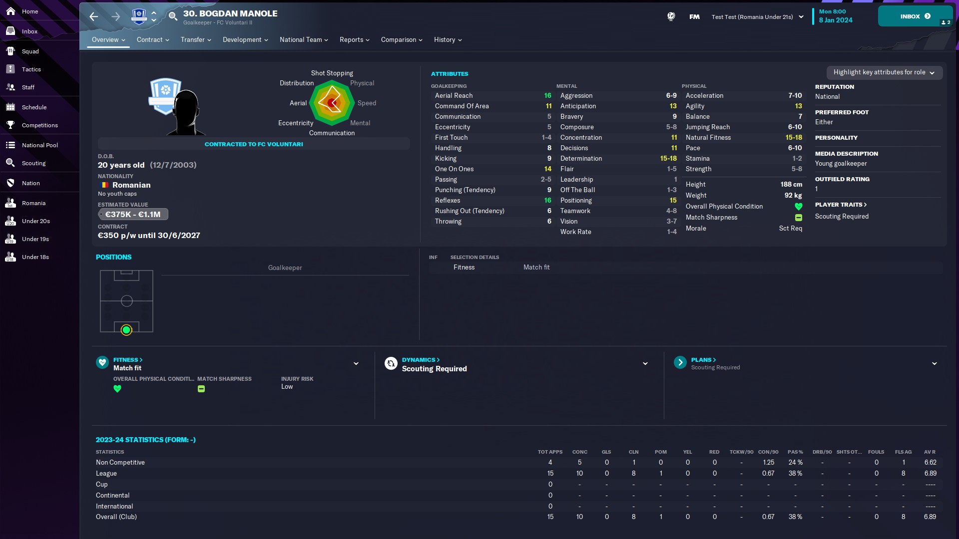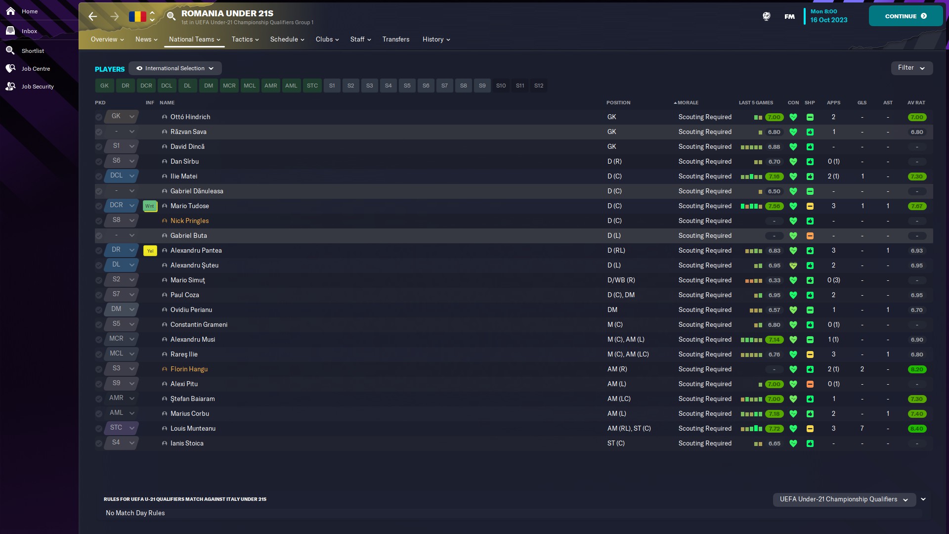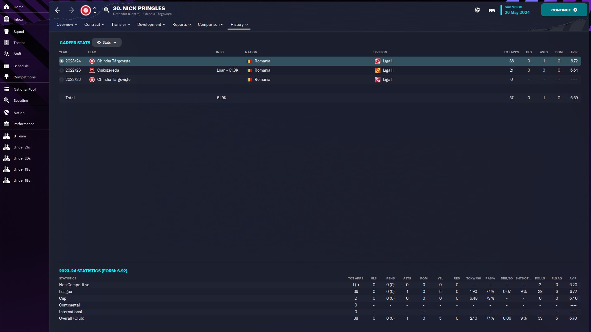 @mercenaries26 titular incontestabil la Chindia, momentan rezervă la naţionala de tineret, unde e introdus de obicei pe final de meci