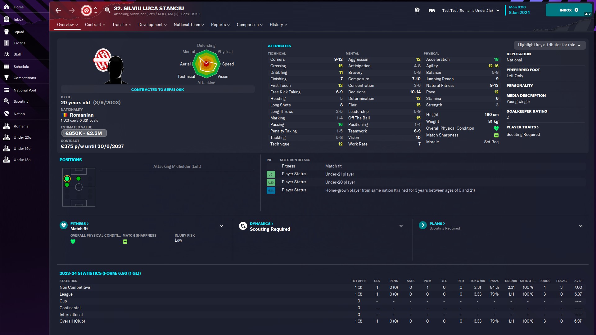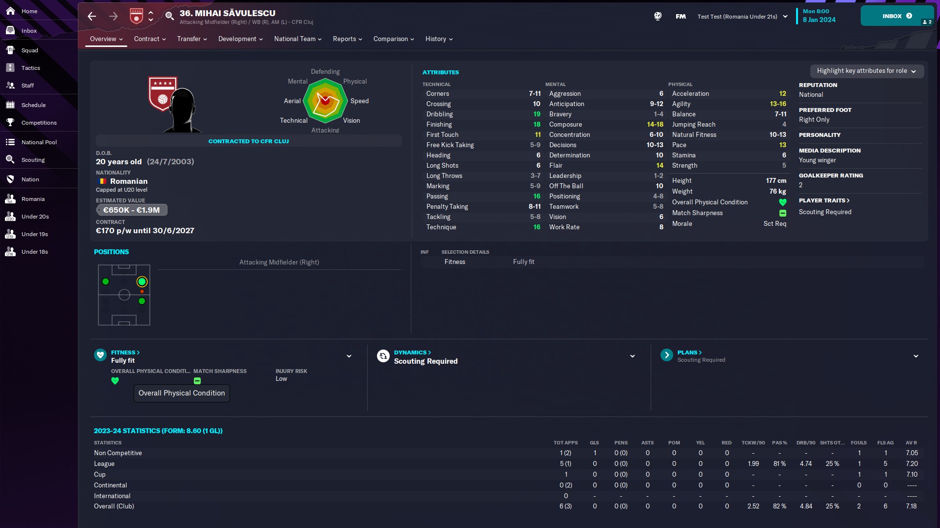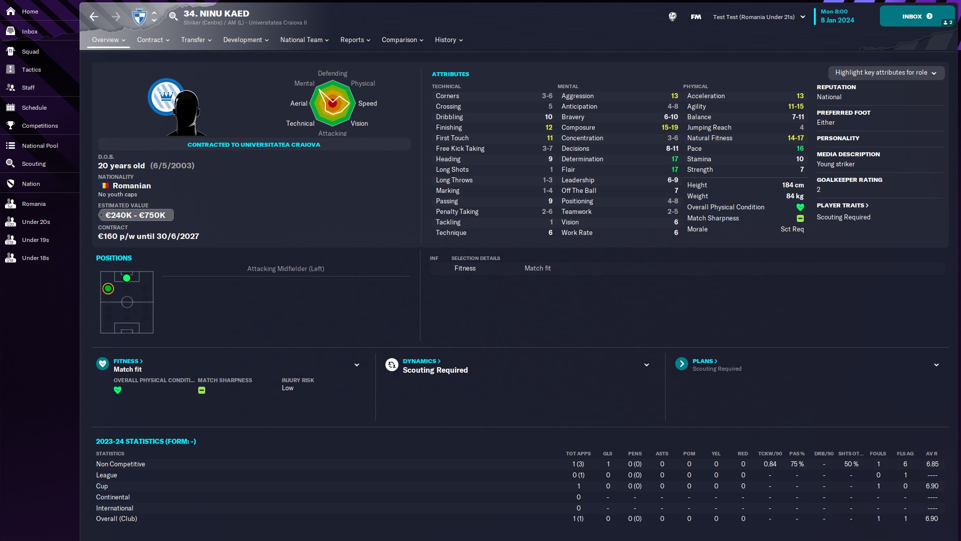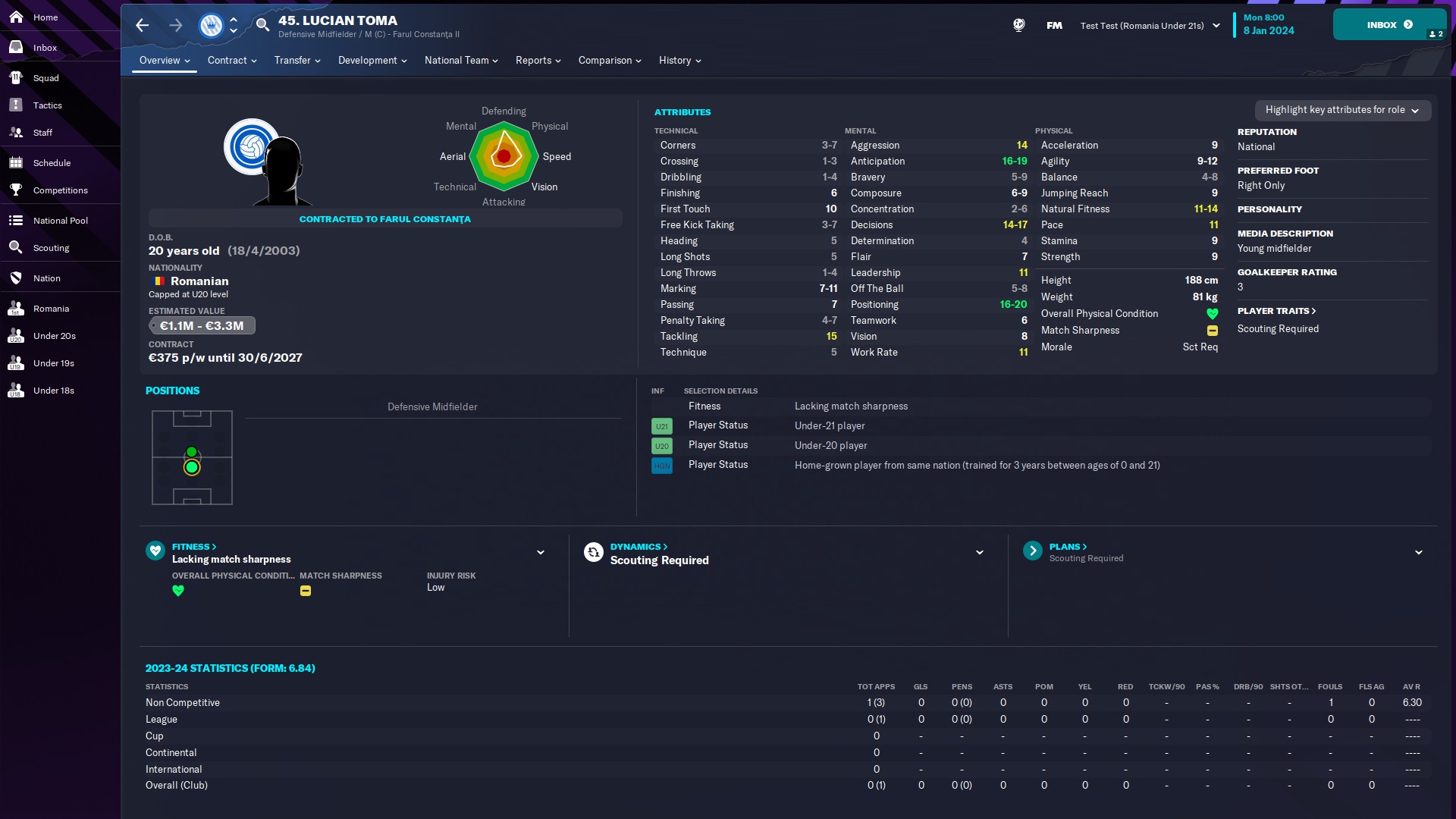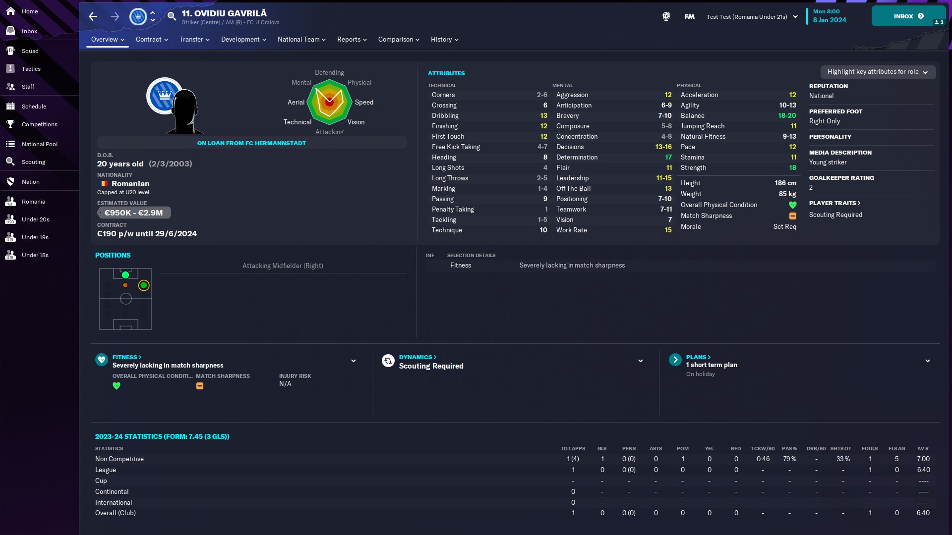 @mercenaries26 titular incontestabil la Chindia, momentan rezervă la naţionala de tineret, unde e introdus de obicei pe final de meci