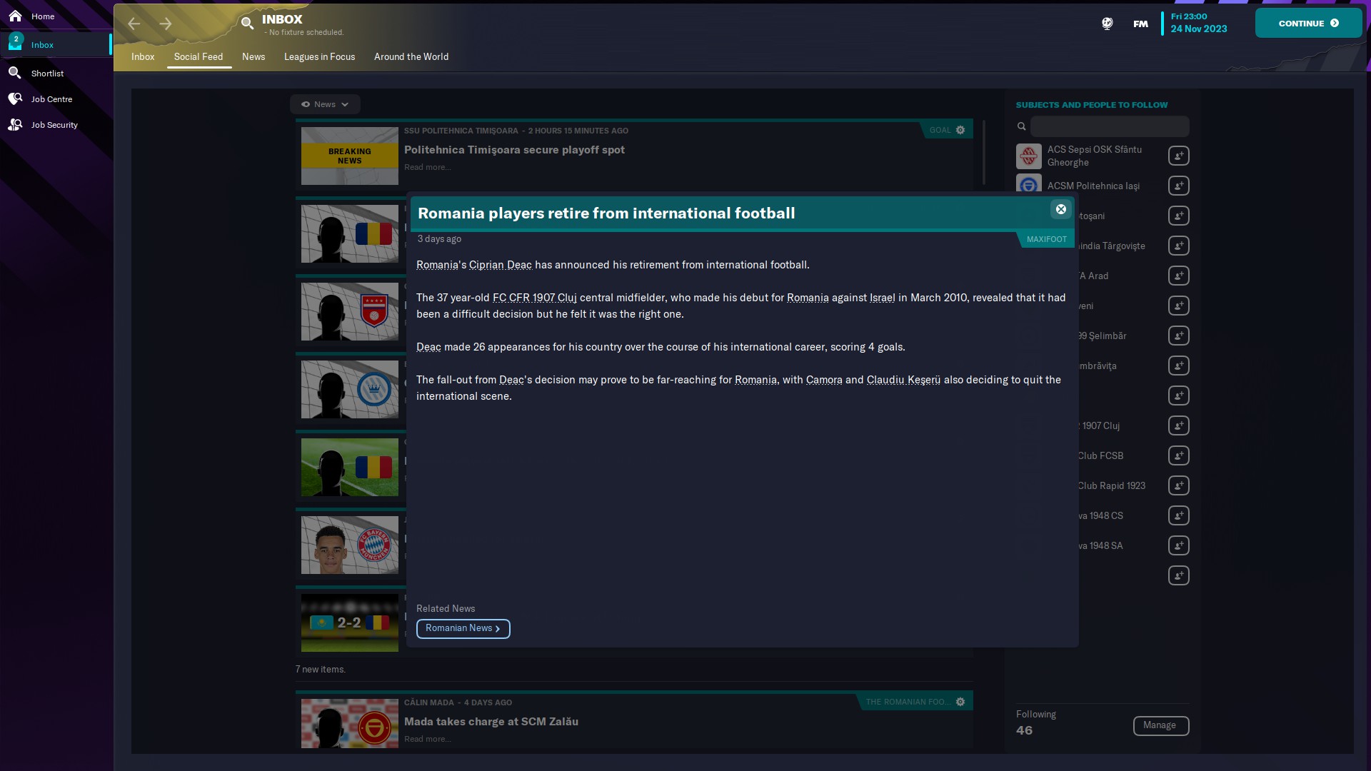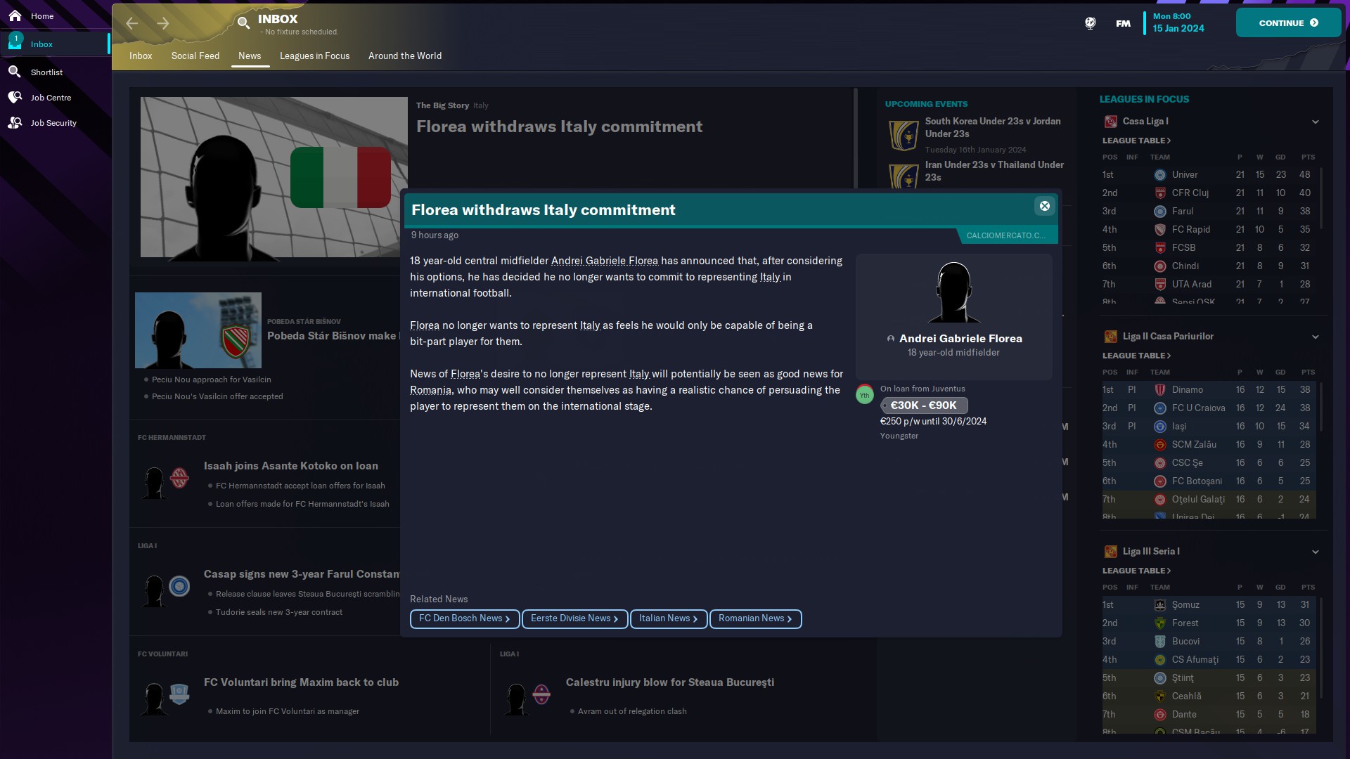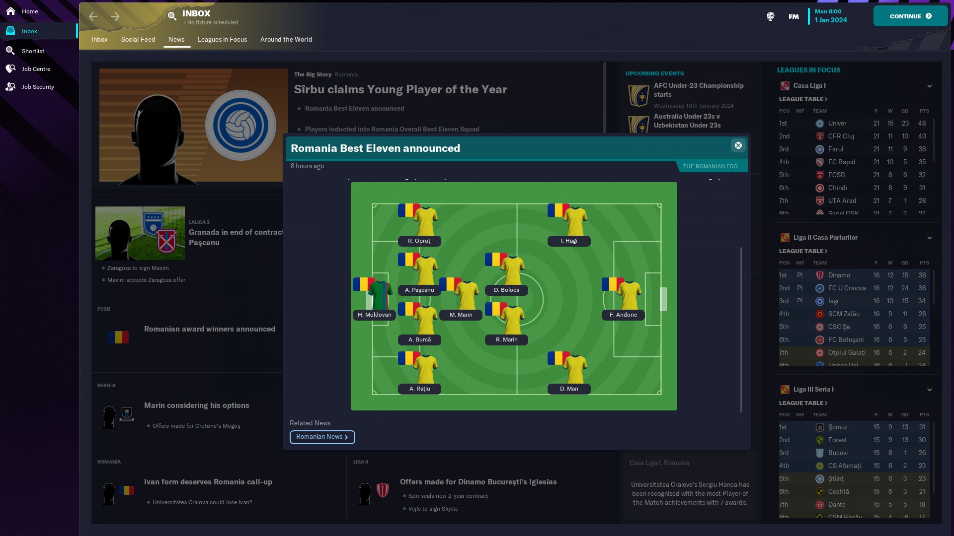 În altă ordine de idei, am primit topul NXGN 2024, cei mai buni 50 wonderkizi şi avem doi pe acolo: Tudose de la Benfica, aflat pe 41 şi un regen, Nicolae Monoranu, născut 2007, AMC, de la FC Voluntari, care e pe locul 37