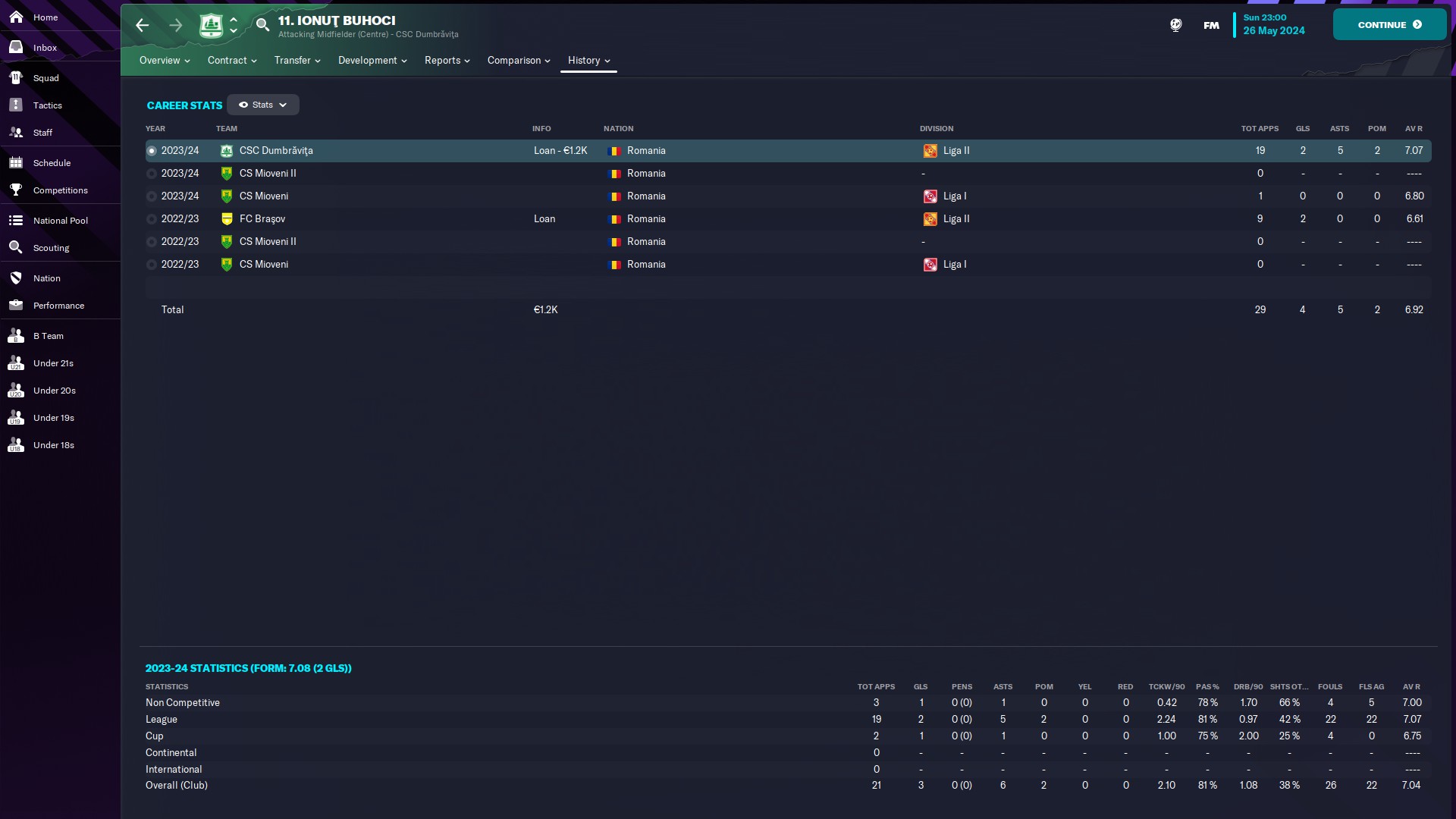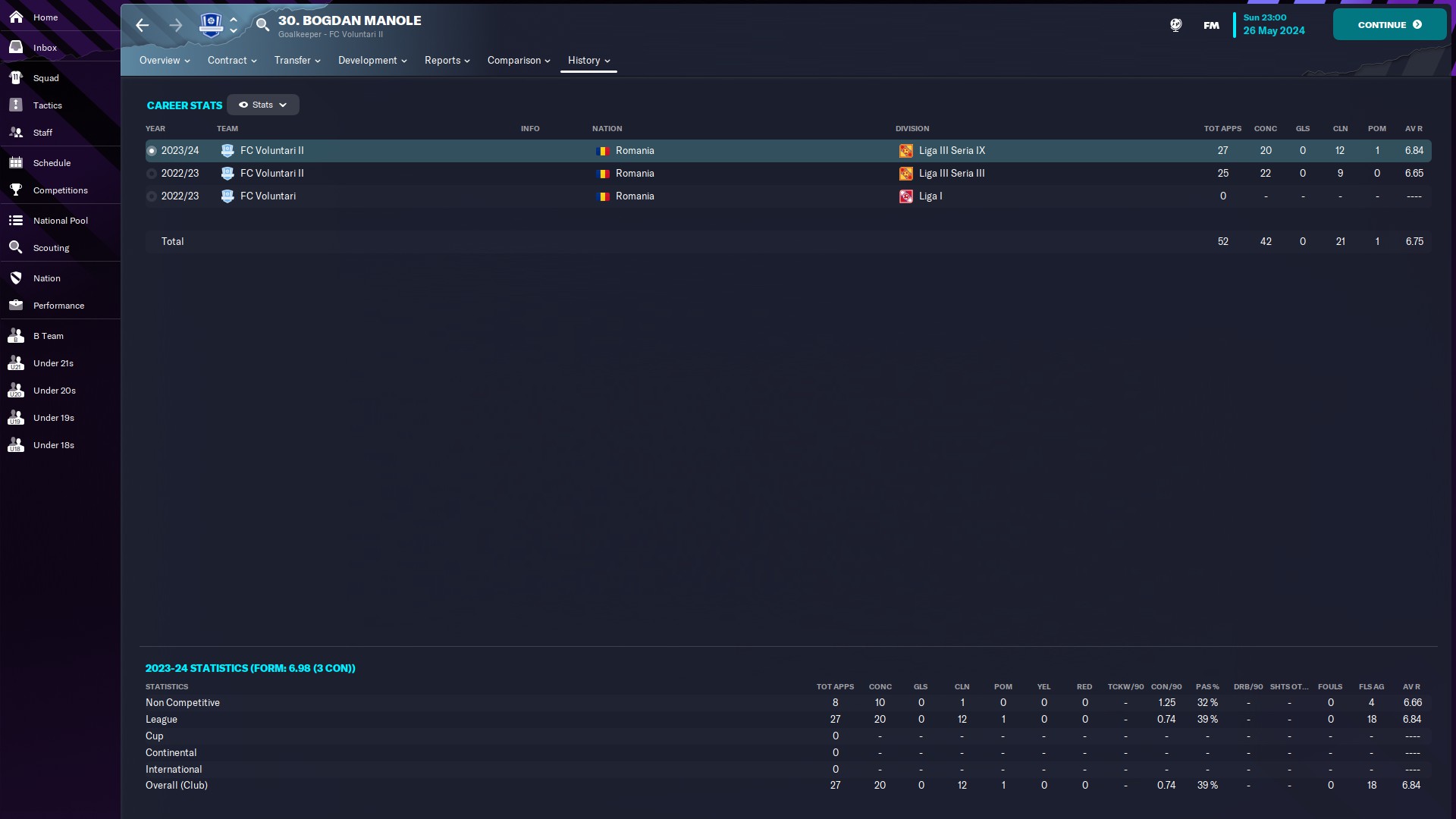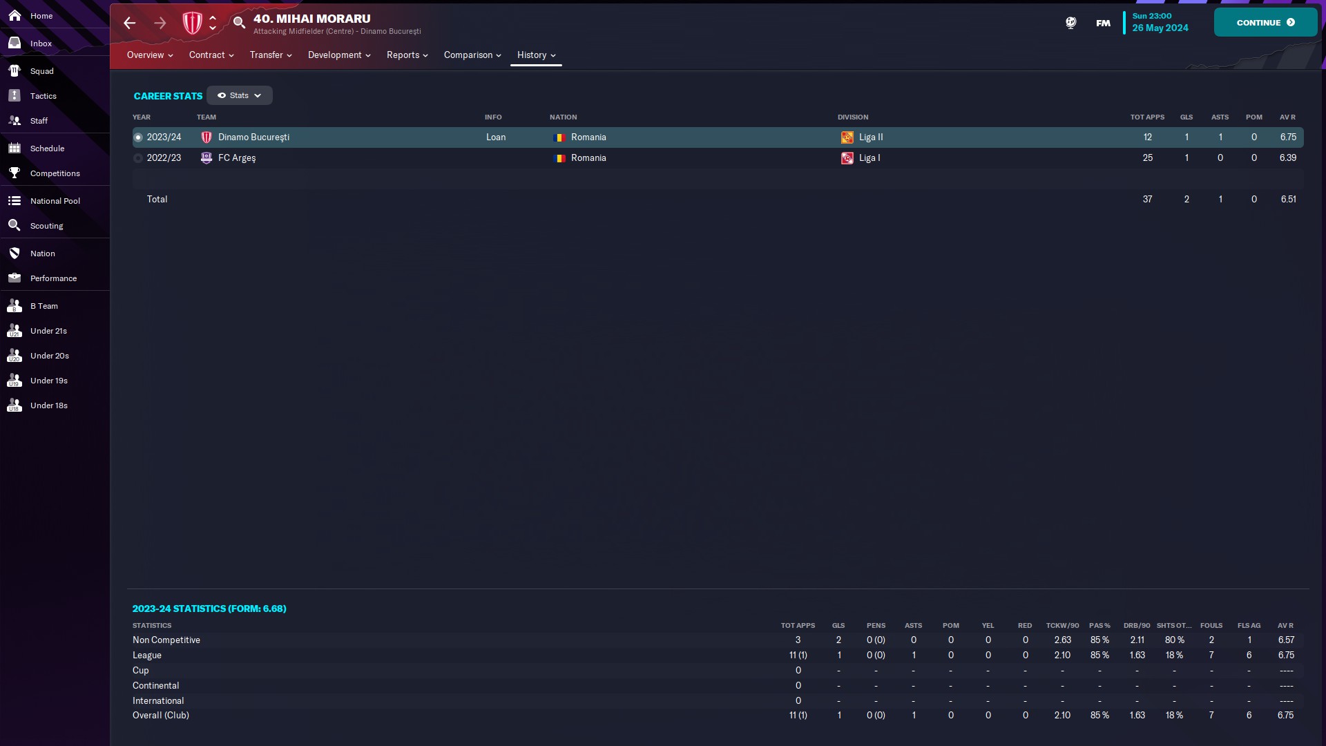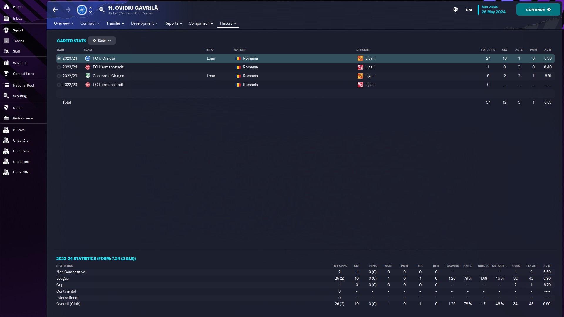 CHiar daca am jucat doar 10 meciuri, măcar am reușit o promovare, momentan am în palmares o retrogradare din liga a 2a și o promovare din liga a 2a. Văd că-mi place Oltenia, dacă era jocul cu vreo 35 de ani în urmă, sigur ajungeam și pe la Scornicești 🙃