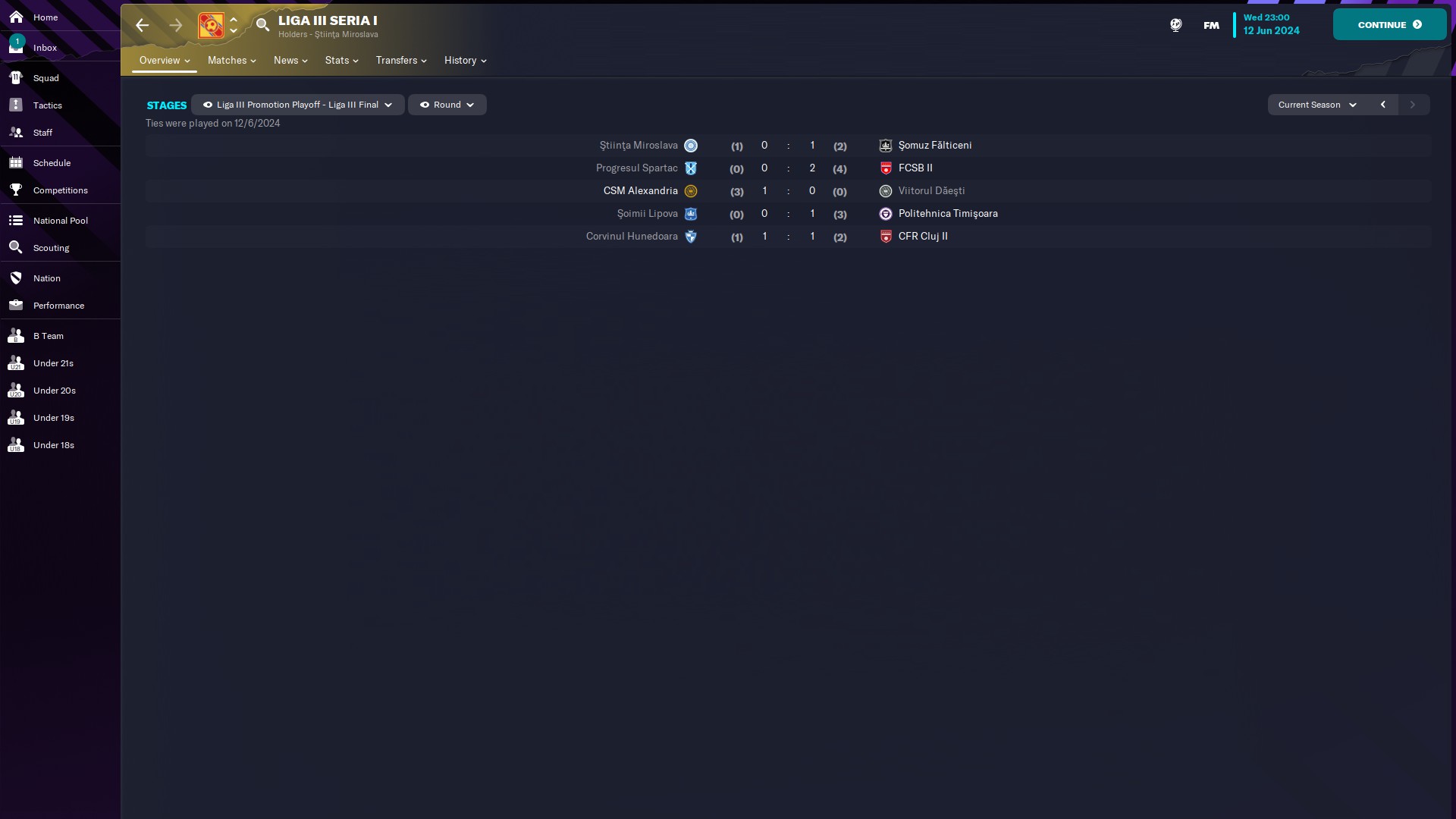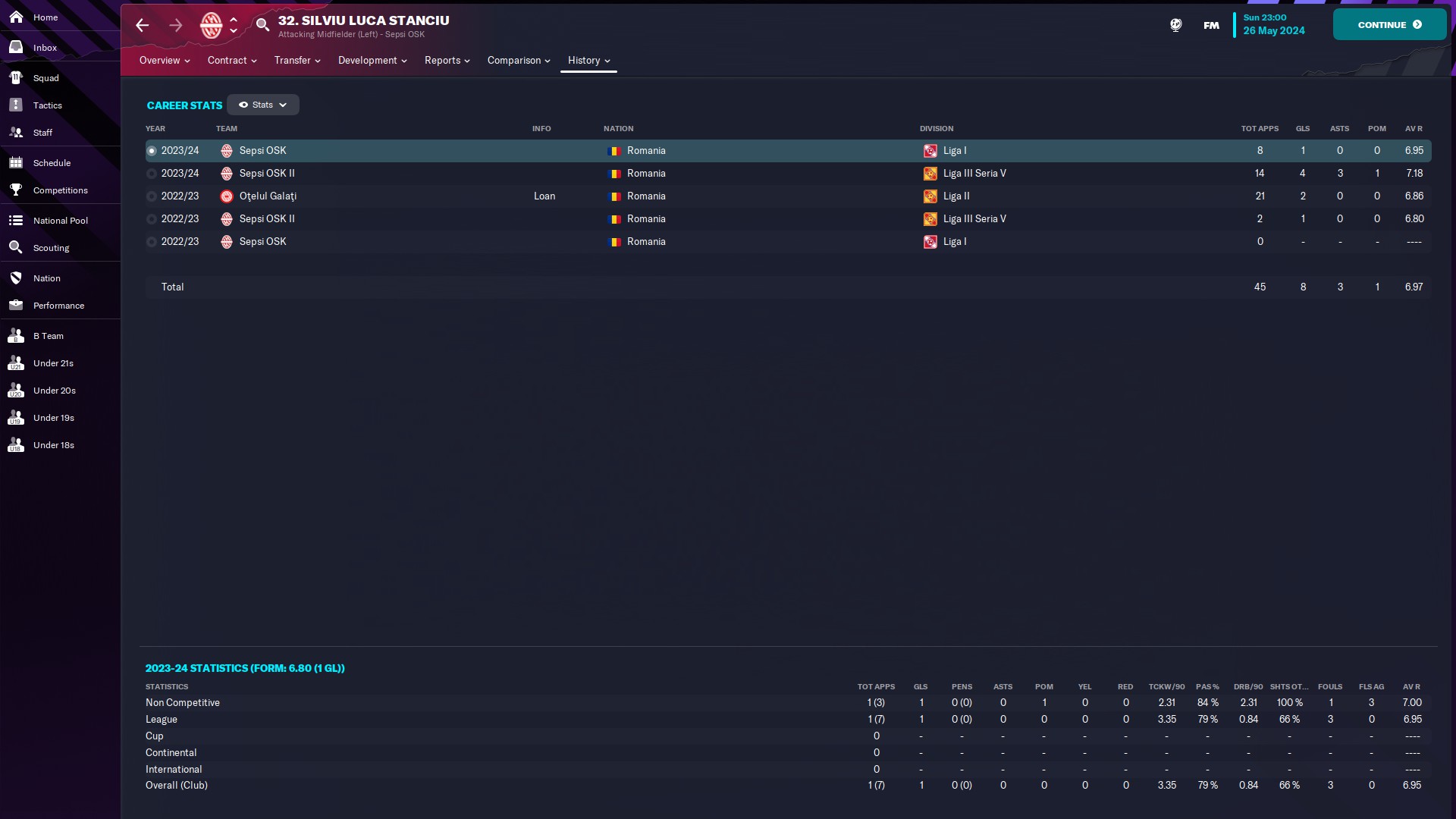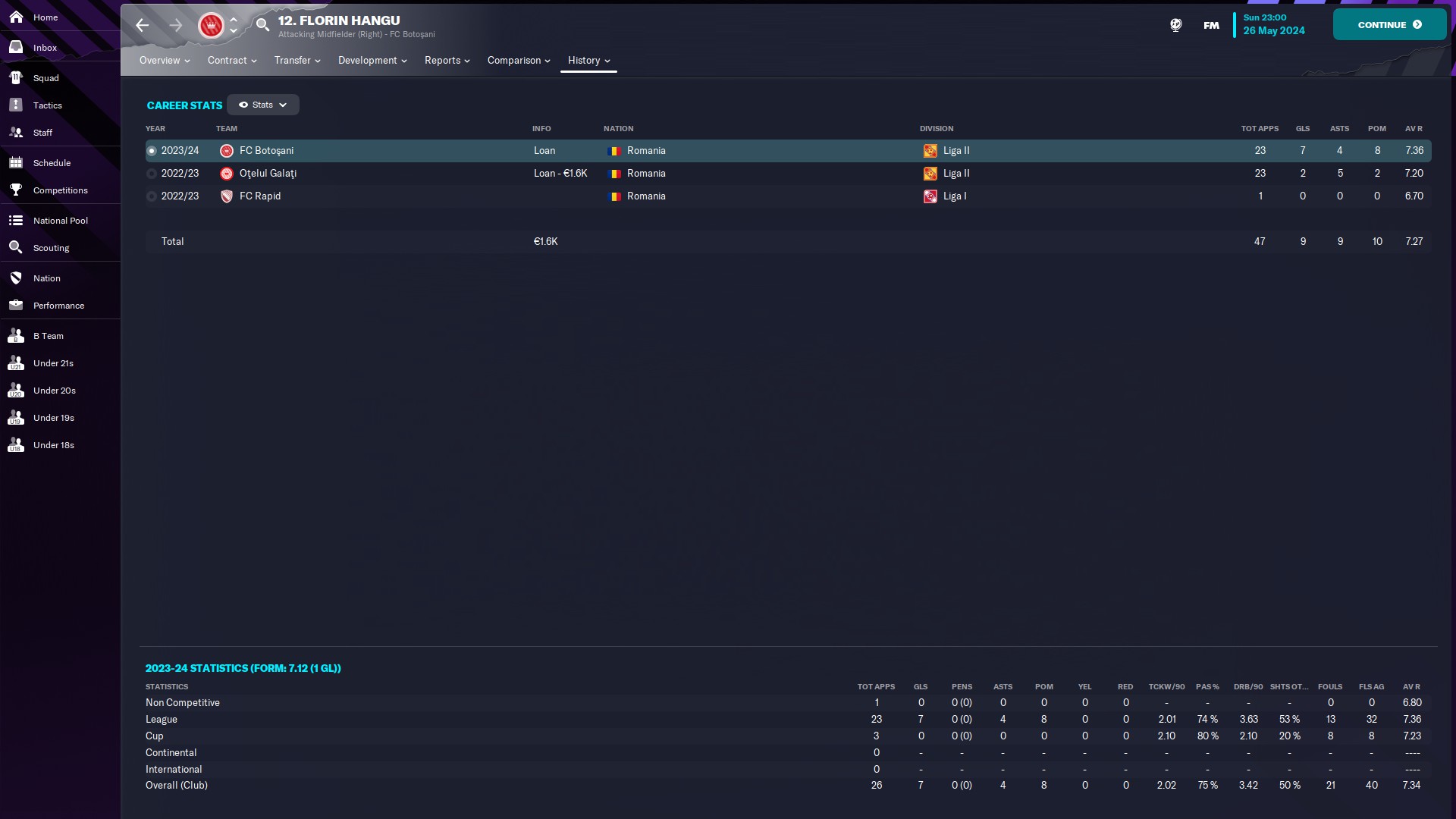 CHiar daca am jucat doar 10 meciuri, măcar am reușit o promovare, momentan am în palmares o retrogradare din liga a 2a și o promovare din liga a 2a. Văd că-mi place Oltenia, dacă era jocul cu vreo 35 de ani în urmă, sigur ajungeam și pe la Scornicești 🙃