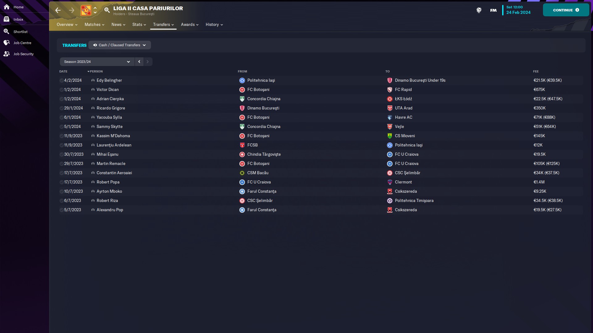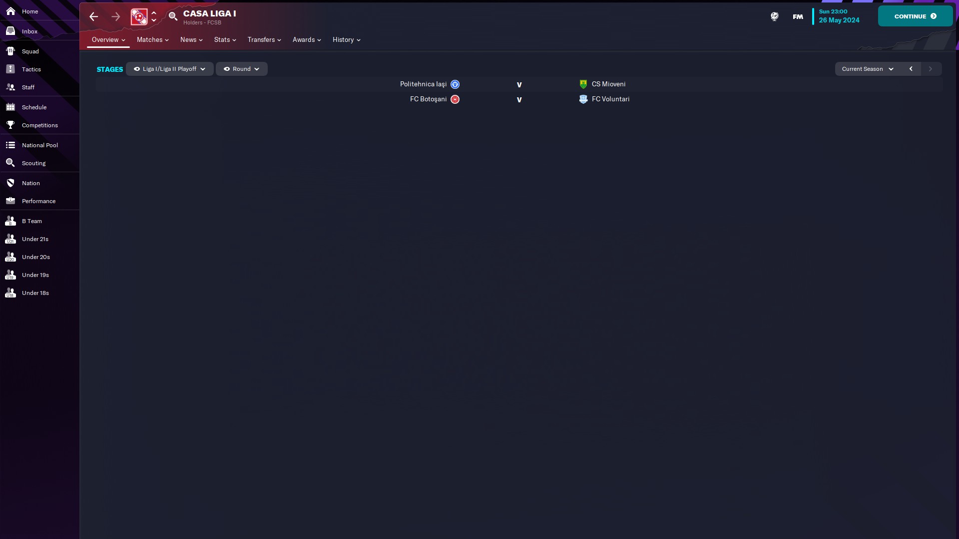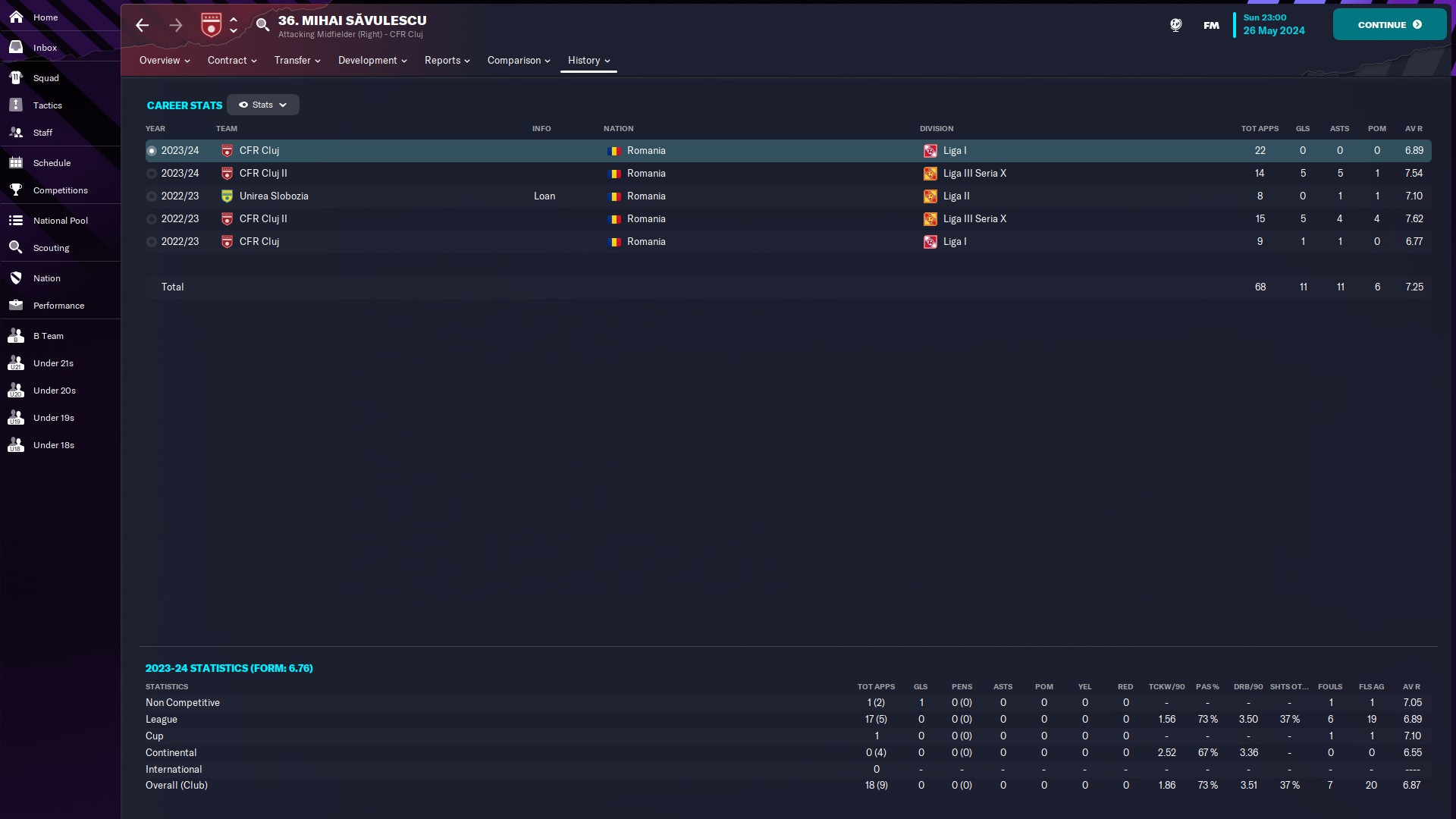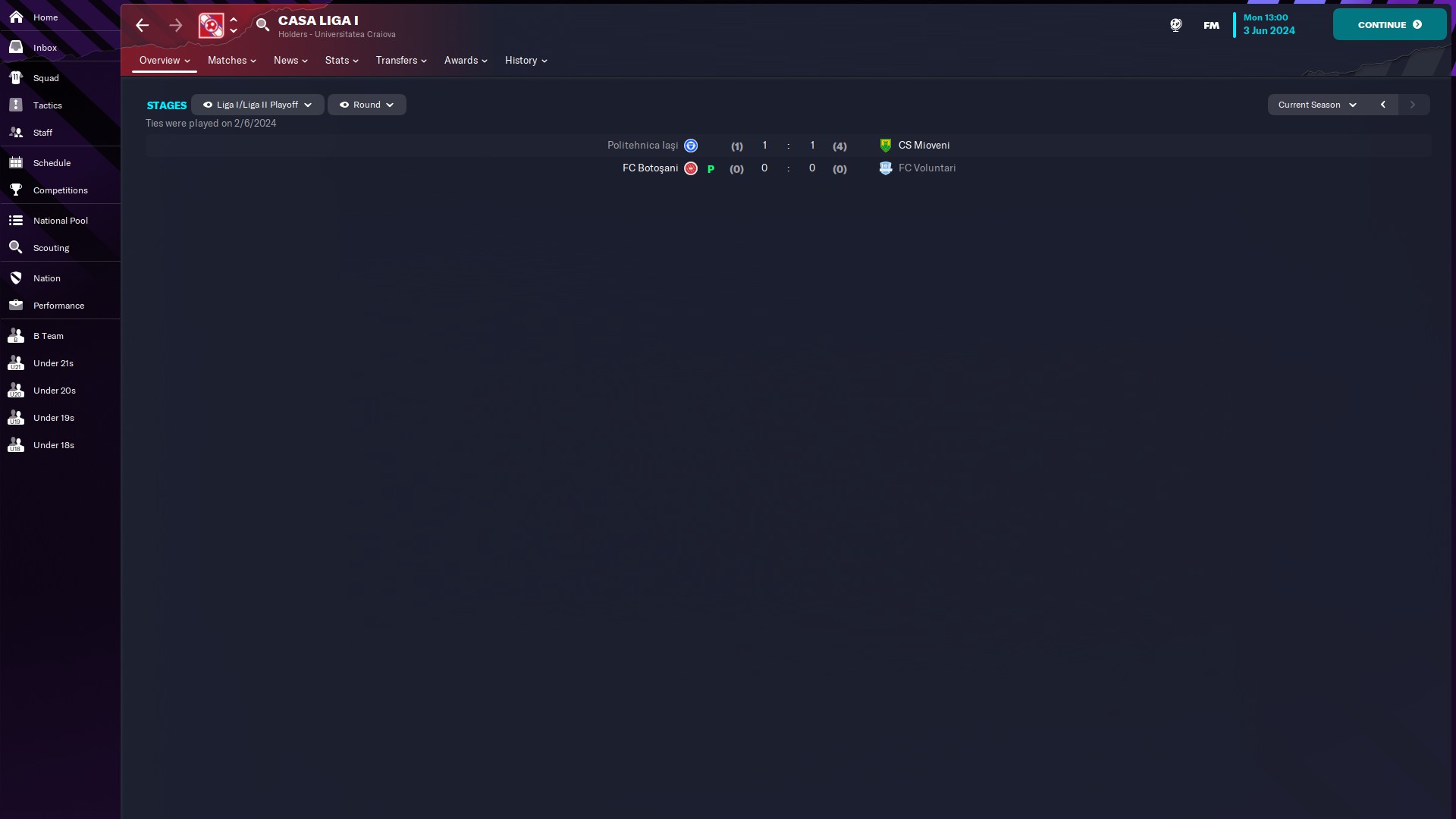 CHiar daca am jucat doar 10 meciuri, măcar am reușit o promovare, momentan am în palmares o retrogradare din liga a 2a și o promovare din liga a 2a. Văd că-mi place Oltenia, dacă era jocul cu vreo 35 de ani în urmă, sigur ajungeam și pe la Scornicești 🙃