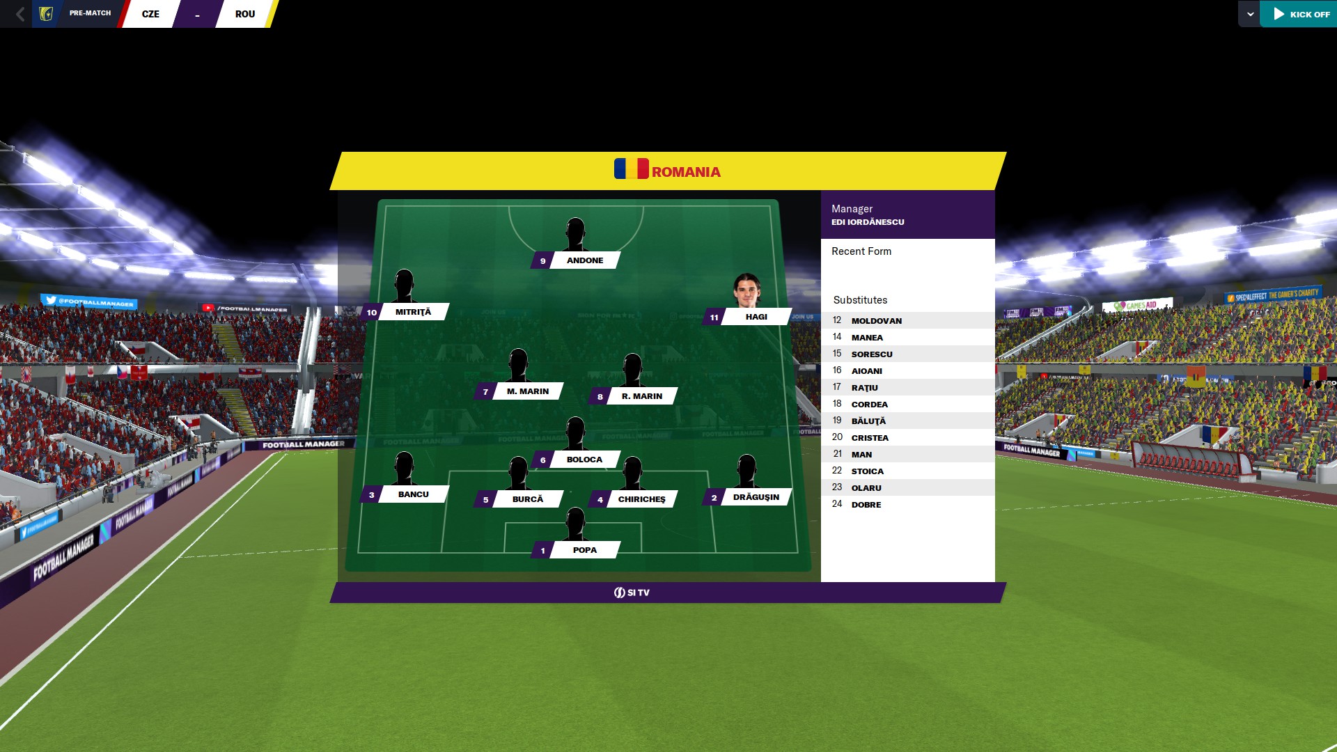 Primul meci este cel cu Armenia, în care doar Nick Pringles este pe bancă! Formula de start e cam best of the best cu Hindrich - Pantea, Tudose, I. Matei, Buta - Perianu - Musi, Grameni - I. Stoica, L. Munteanu, R. Ilie.