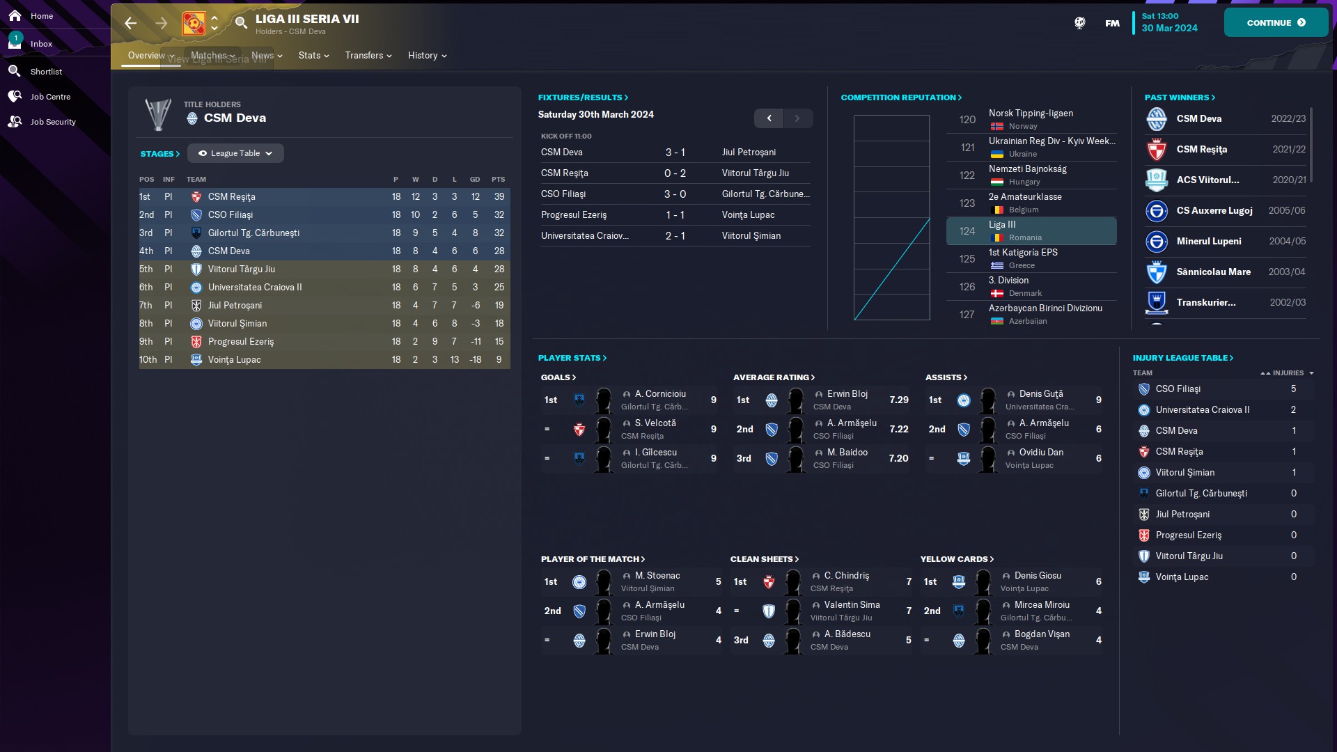 - seria 7: Reşiţa tot speră că anul ăsta va fi cu noroc, în schimb, Viitorul Pandurii se tot afundă