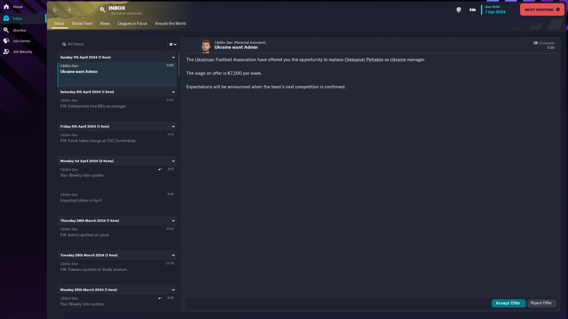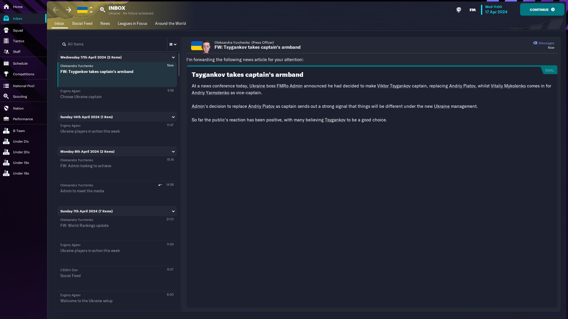 Problemă! Mi s-a oferit şansa de a antrena Ucraina, iar aşa cum am spus data trecută, nu voi mai lua nicio decizie fără voi când se va mai ivi o astfel de ocazie.