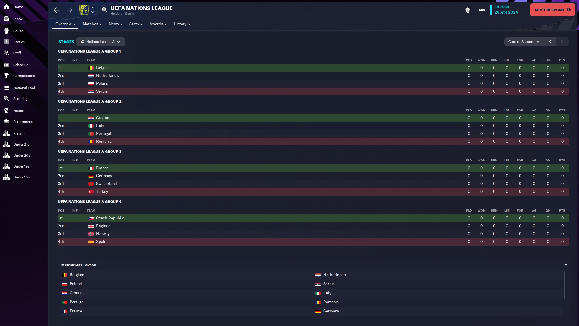 În Liga Naţiunilor, România e în prima grupă valorică şi a nimerit dureros: Croaţia, Italia, Portugalia - locul 4 scrie pe noi