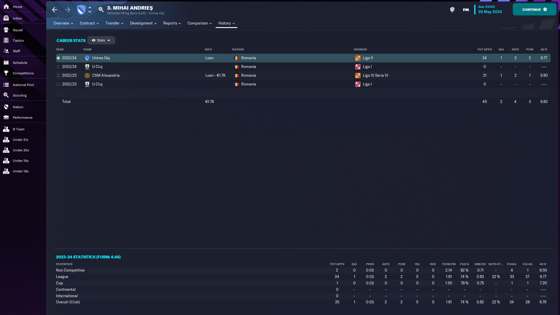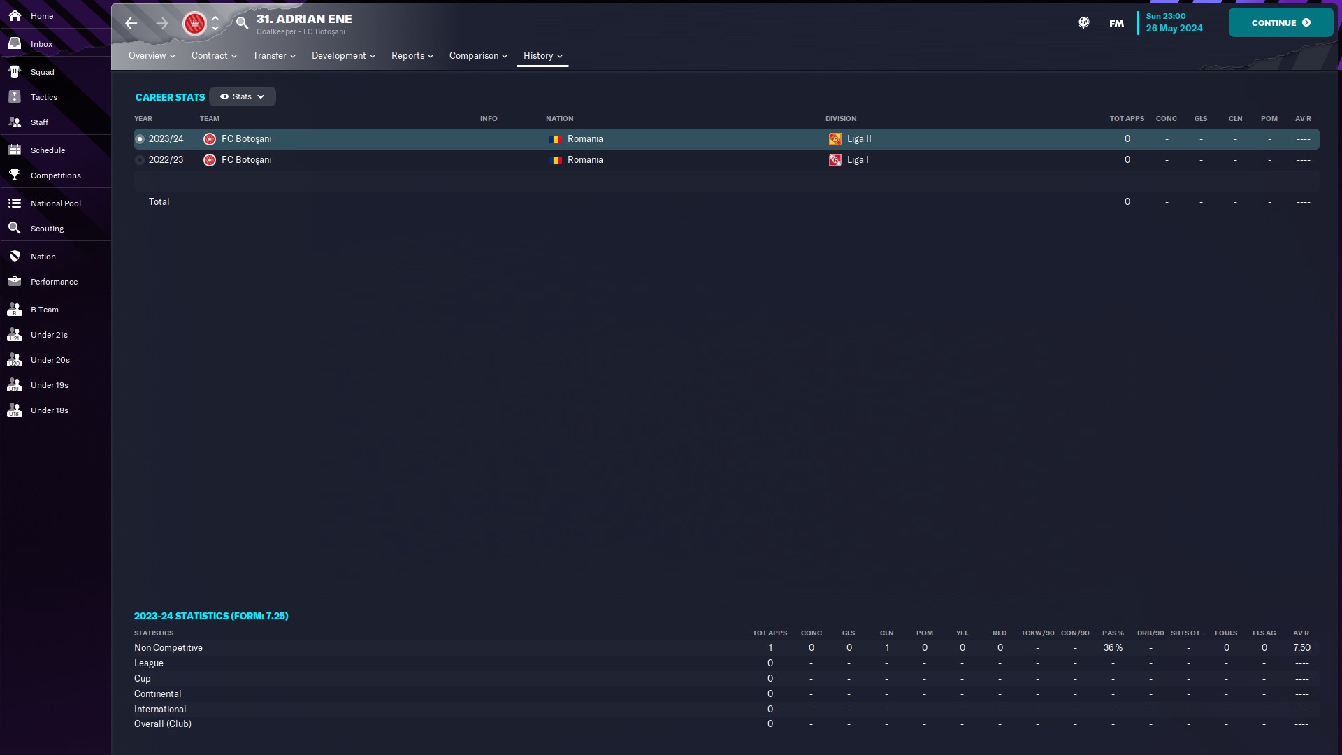 @adyrychu ghinionistul planetei, niciun meci jucat la seniori în două sezoane. Retrogradarea echipei în eşalonul secund nu i-a deschis porţile primei echipe nici măcar pentru un singur minut